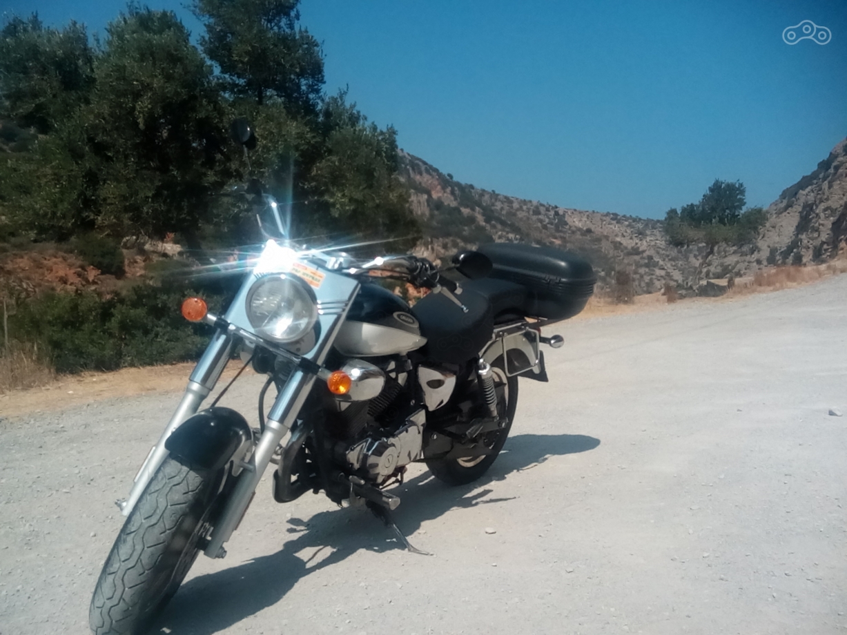 Выглядит здорово, есть задний вместительный кофр, а то что всего 250 кубиков, так нам хватило: мы лёгкие и никуда не торопимся.