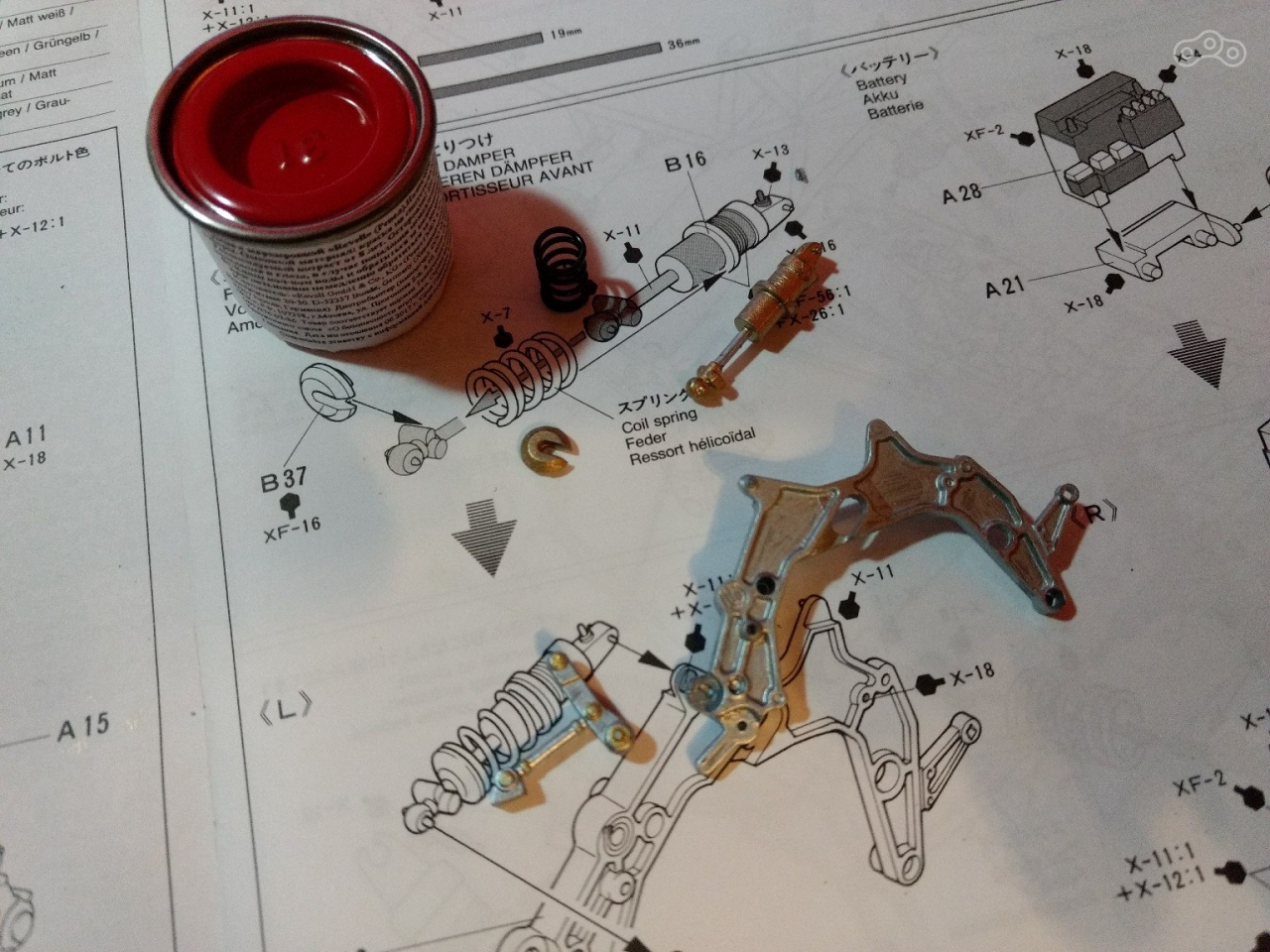 Даже амортизаторы состоят из трех деталей, их покраске, для большей реалистичности, следует уделить особенно много внимания.
