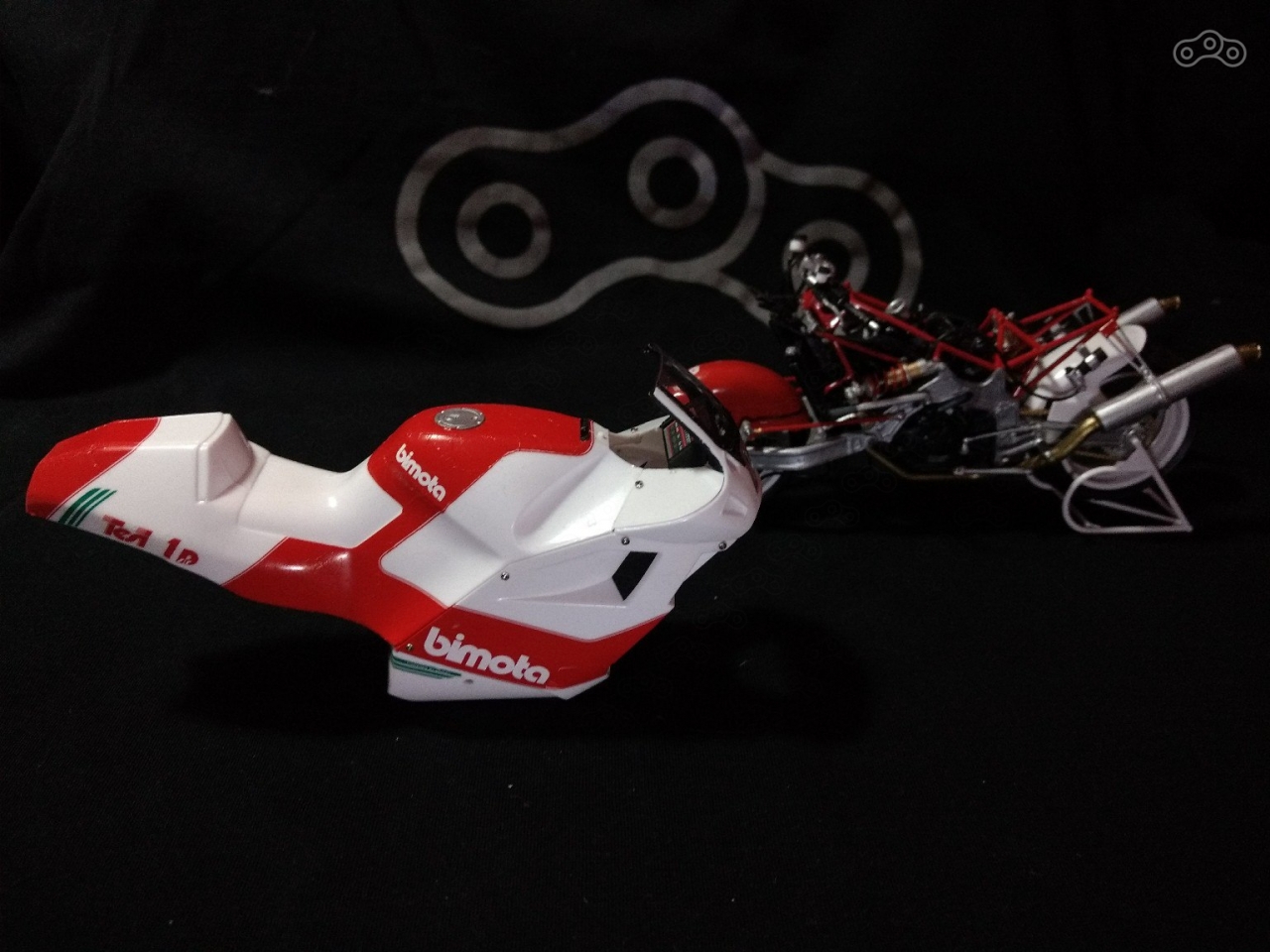 Влюбиться в Bimota Tesi не трудно. В действительности для этого достаточно просто увидеть этот мотоцикл, а мне же довелось познакомиться с ним довольно близко во время одного из осенних тестов. Именно поэтому я и не смог пройти мимо сборной модели Bimota Tesi 1D 906SR в масштабе 1/12.