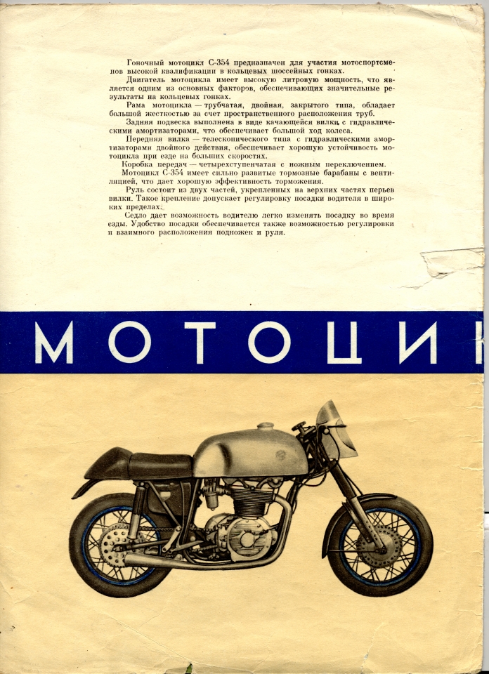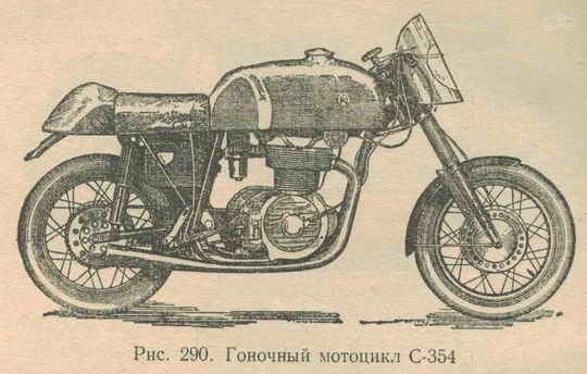 С - 354 нужно отметить как важный этап развития отечественной гоночной техники, так как на основе его ходовой части созданы мотоциклы С - 555, С - 557, С - 358.