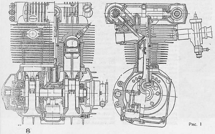 Четырехтактный верхнеклапанный двигатель объемом 346 куб.см. развивал мощность 32 л.с. при 8000 об/мин. и степени сжатия 9,5 ед. Цилиндры были отлиты из алюминиевого сплава и в них были запрессованы гильзы из хромо - кремнистого чугуна. Поршни, отлитые из алюминиевого сплава, имели два компрессионных и одно маслосъемное кольцо. Нижняя головка шатуна разъемная, с биметаллическими вкладышами. Коленчатый вал разъемный на трех шарикоподшипниках. Четыре клапана и два распредвала приводились в действие валом и коническими шестернями. Регулировка газораспределения осуществлялась муфтой в торцевыми шлицами с точностью 2 градуса. Система смазки с сухим картером и двумя шестеренчатыми насосами. Моторная передача - шестеренчатая. Питание двумя карбюраторами К - 93 с диффузорами 25 мм. Сцепление в масляной ванне, четырех ступенчатая коробка передач.