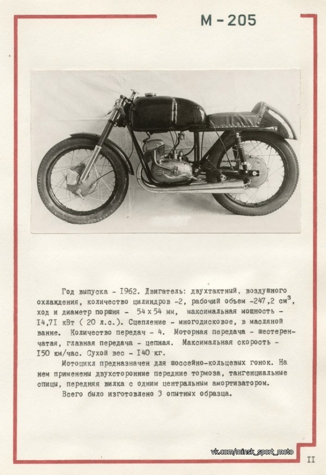 В 1961 году в журнале "За рулем" вышли две статьи, в которых критике были подвергнуты гоночные мотоциклы Минского мотозавода. Отмечалось низкое качество и брак, а так же недостатки конструкции. Руководство завода в ответ ссылалось на объективные трудности и представило новые модели. Правда, дальше опытных образцов дело не пошло и спортсмены продолжали использовать в классе до 125 куб.см. М1А, М1Е, К - 58 и Серпуховские мотоциклы.