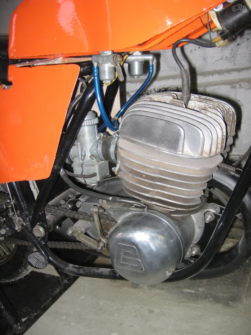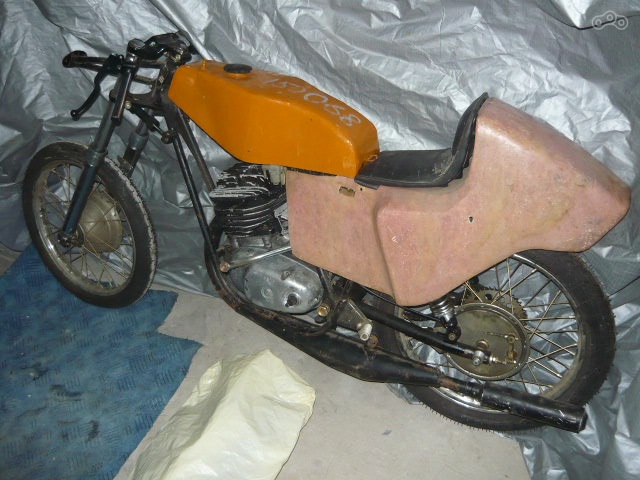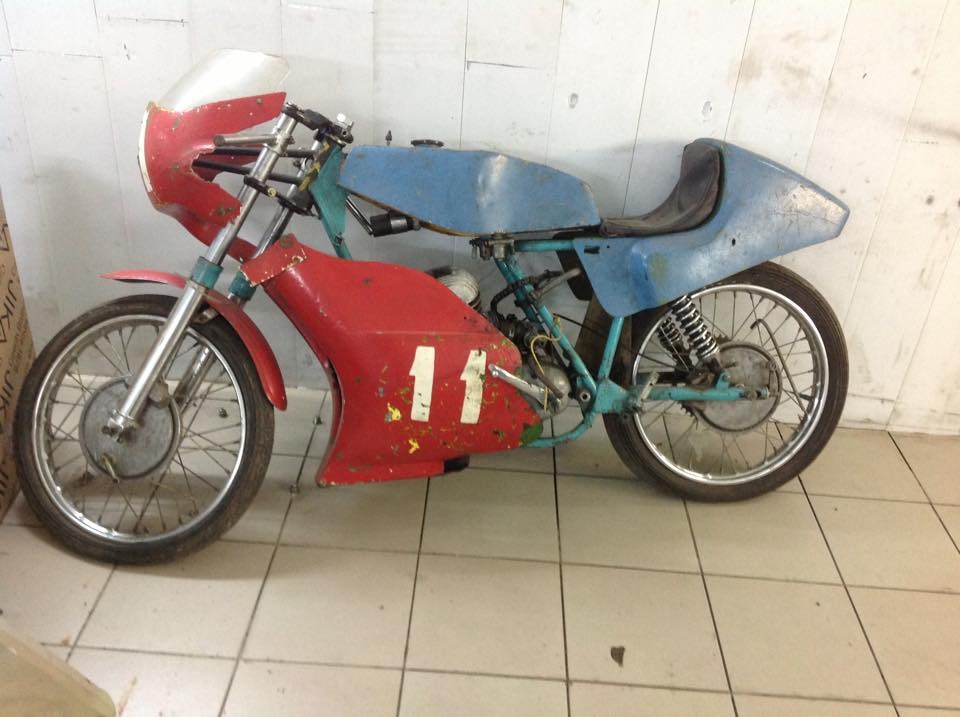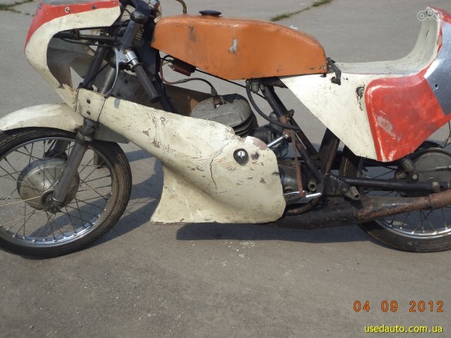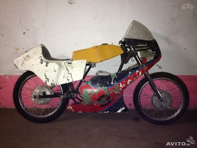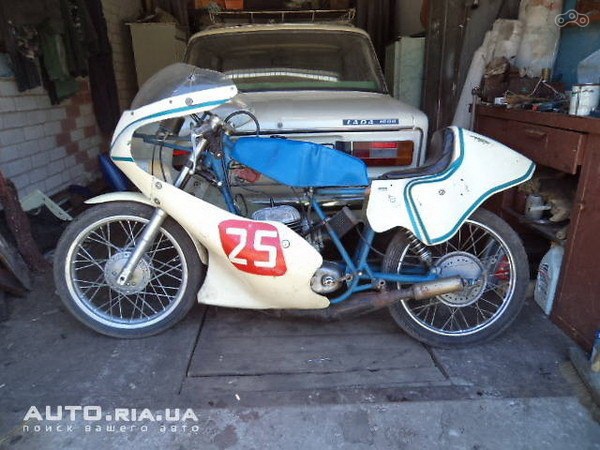 В таком виде мотоцикл выходил с завода - бак зеленого, синего или оранжевого цвета и неокрашенный гелькоут пластика.