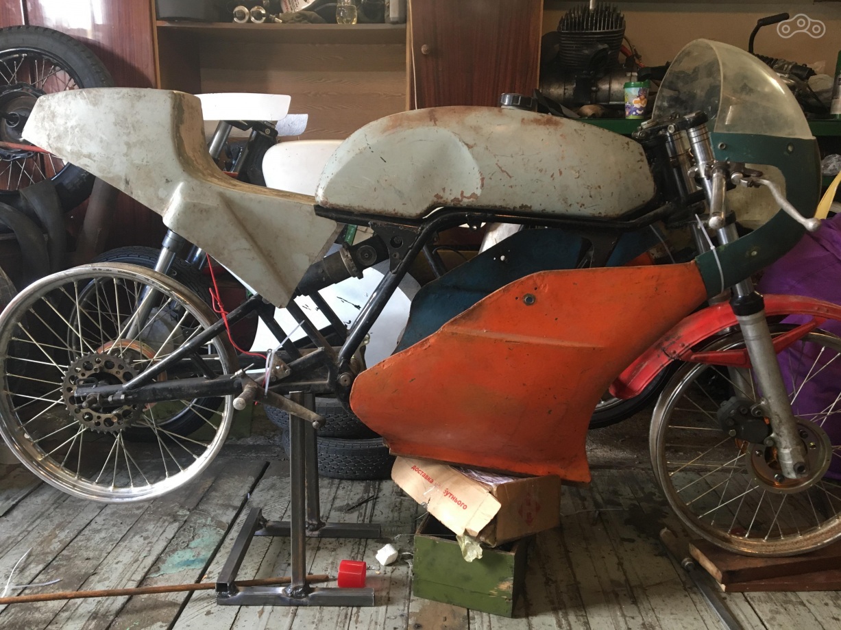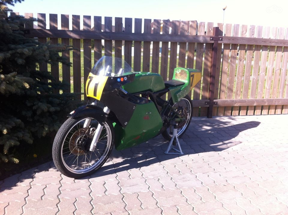 Мотогонки 80х, класс до 125 куб.см, на старте 3.216 и 3.227. Как видим, на поул можно было пробиться и на 3.216, а ведь его начали выпускать аж в 1977 году! Видимо, разница между этими мотоциклами не была такой уж огромной. Мотоцикл под номером два можно рассмотреть подробнее -