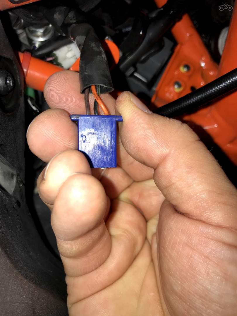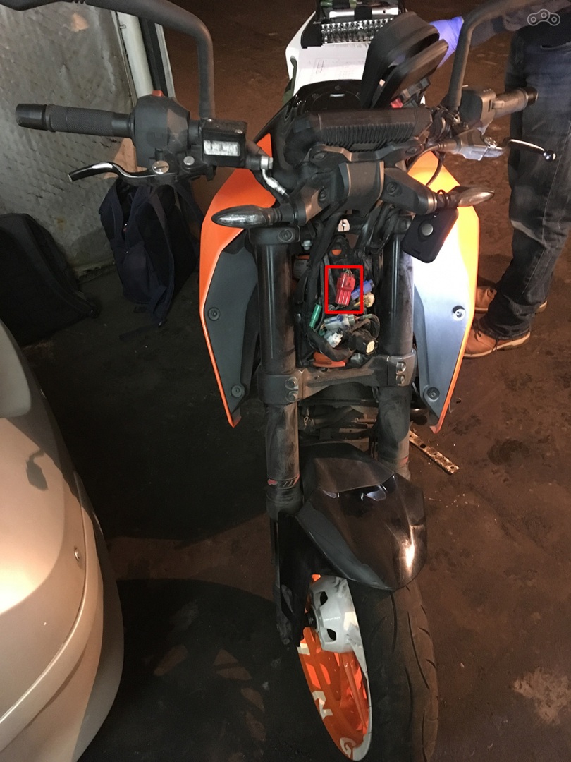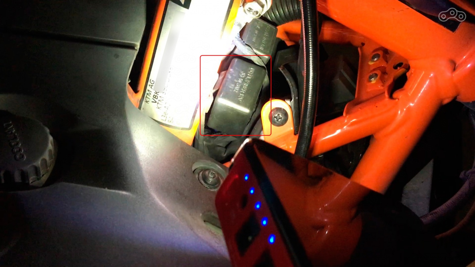 Да-да, корпус напечатан на 3D-принтере. Сначала нам надо снять штатное реле поворотов. На KTM 390 Duke 2017 модельного года оно находится за траверсой под рулём, по правую сторону водителя. Руками вытягиваем реле (оно там висит на «крючке»):