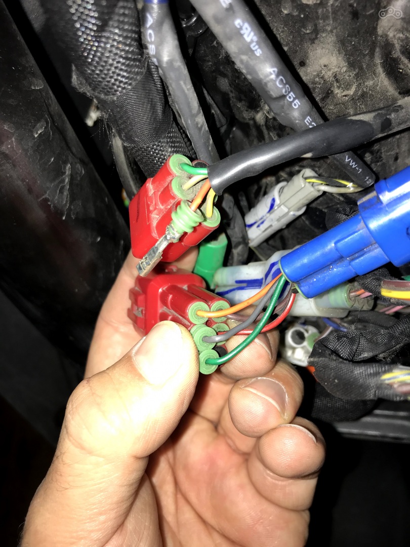 Теперь нам нужно достать провода из разъёма. Отрезать их вовсе не обязательно, можно с помощью какого-нибудь тонкого пинцета «отстегнуть» защёлку каждого пина и вынуть его. Коричневый провод из этого разъёма мы соединяем с оранжевым проводом из кастомного реле — это у нас +12V после включения зажигания.