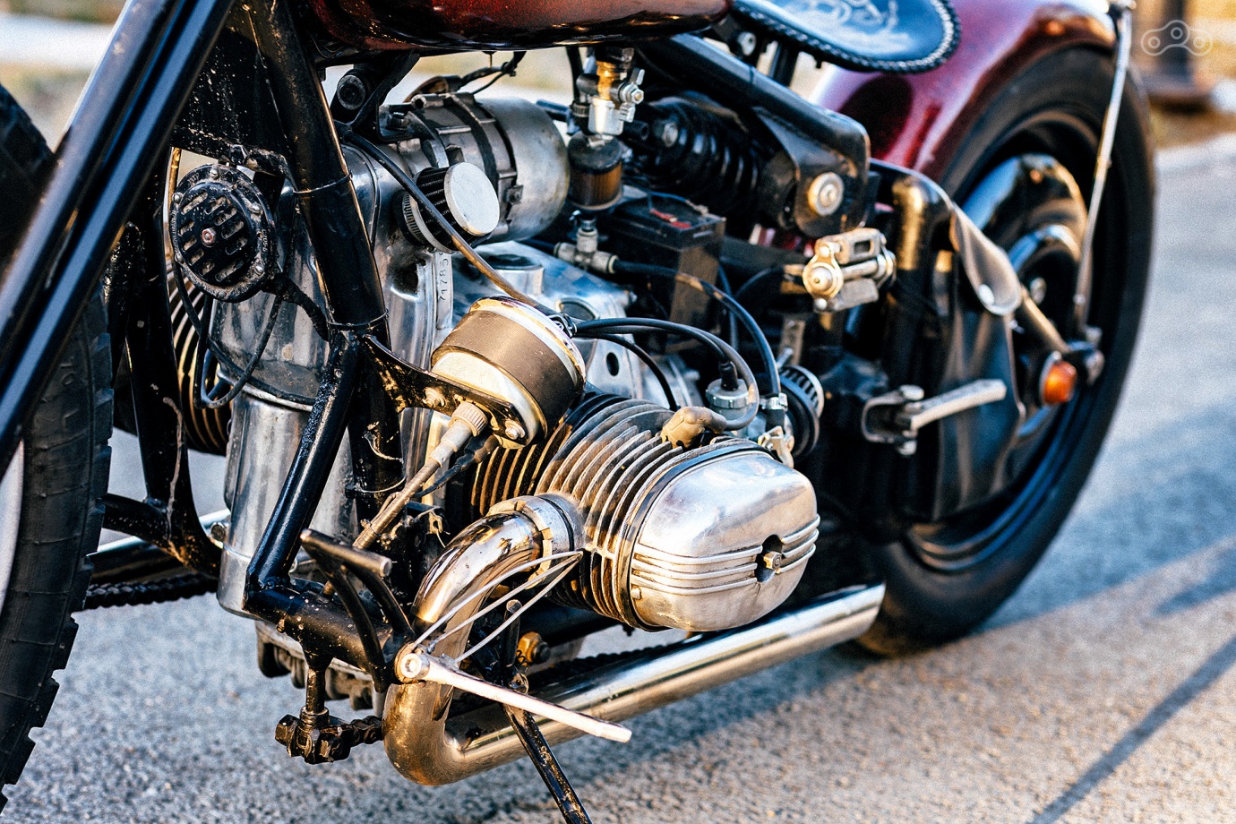 1. Мотоцикл построен на базе Урала в казанском Axl Custom Garage для регулярных покатушек и задачу свою выполняет полностью, в потоке не теряется, вид имеет. За счет небольшого веса и доработки двигателя динамика выросла и по ощущается лучше японских чопперов чесоток. Максималка по заверению Антона достигает 160 километров в час, что неплохо для советского оппозита.