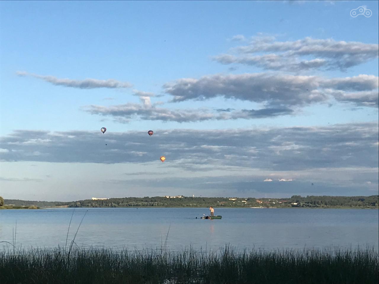 К сожалению песчаного пляжа по близости не оказалось, а береговая зона у воды была покрыта травой и кустарником, вход в воду не слишком приятный: водоросли, после чего глиняное дно. Преодолеть сии затруднения нам помог плавательный аппарат. С борта сего чудесного судна нам довелось наблюдать неопознанные летательные шары, бороздящие просторы небосвода, полюбоваться красивым закатом над водохранилищем, да и просто поплавать,покуда стояли теплые и приветливые летние деньки.