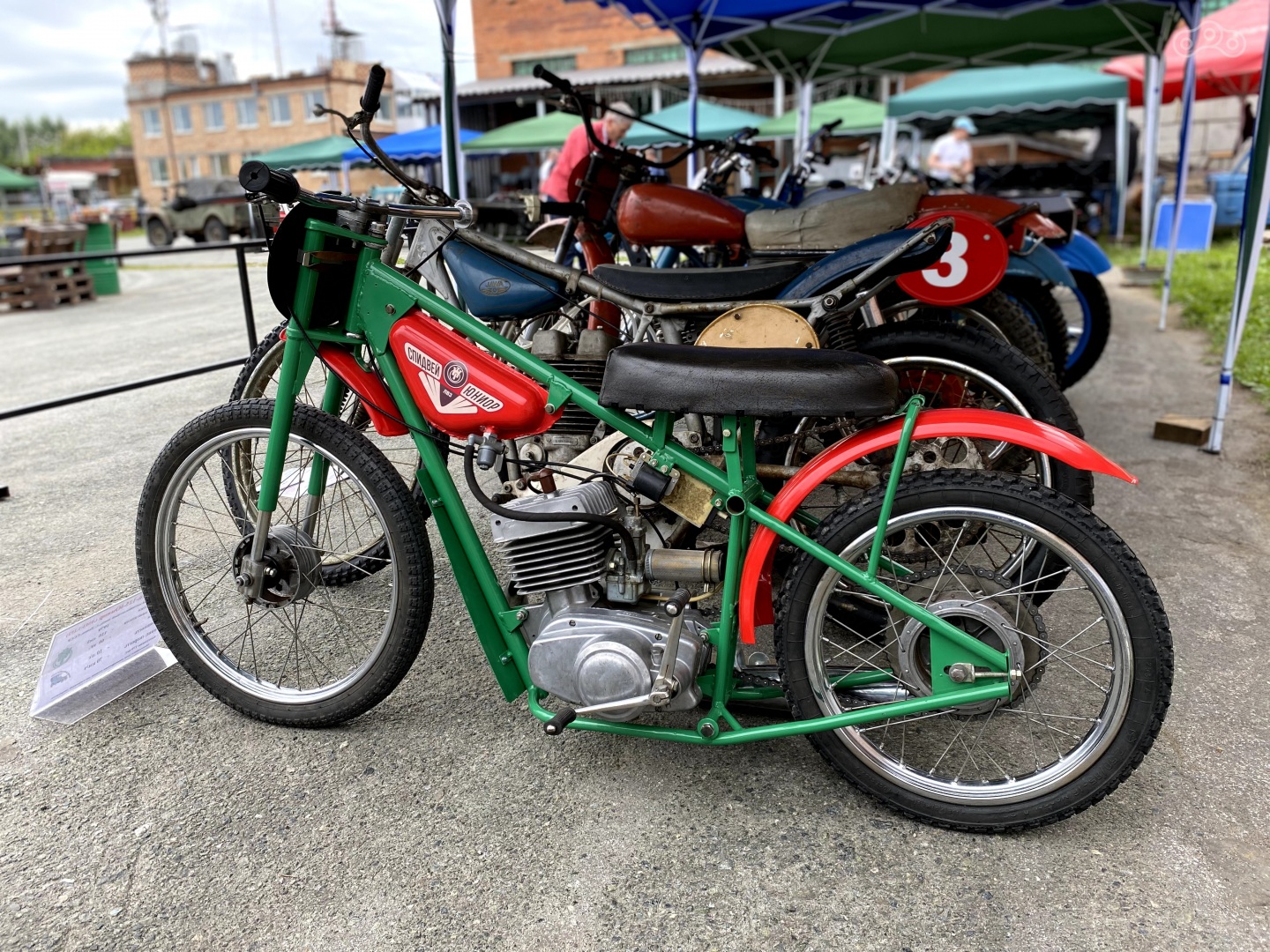 Несколько спортивных мотоциклов из коллекции свердловского коллекционера Виктора Венедиктовича Билецкого. На фото Минск кросс М-207К с двигателем от К-175СК 1967 г.