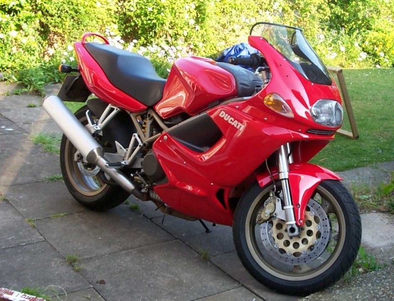 Были еще версии, как я понял заряженные, это ST4s и ST3s, отличались форсированным двигателем и аннодированной передней вилкой. Почему ведро с болтами? — десмодромный механизм + сухое сцепление. Два этих фактора делали из мотоцикла грохочущее чудо, но только на холостых оборотах…