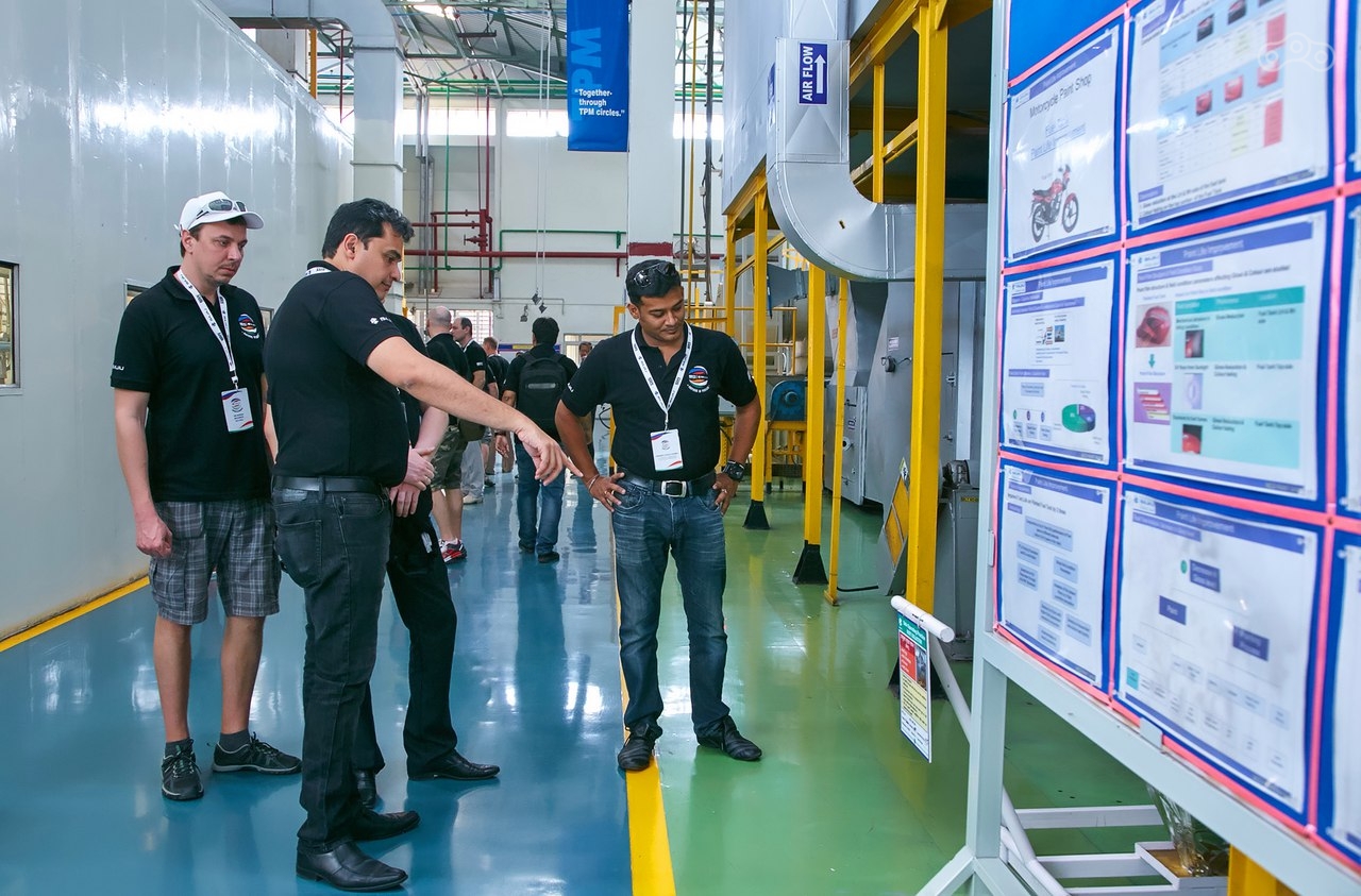 Для справки: 1926 - год основания Bajaj. Пять поколений семейной преемственности градообразующего предприятия можно было бы выделить в отдельную касту, если бы официально касты не были упразднены в Индии в 1950 году. Всего в Индии 4 фабрики, 2 из которых работают на экспорт. Мы посетили Bajaj Waluj в Аурангабаде и Bajaj Chakan в Пуне.
