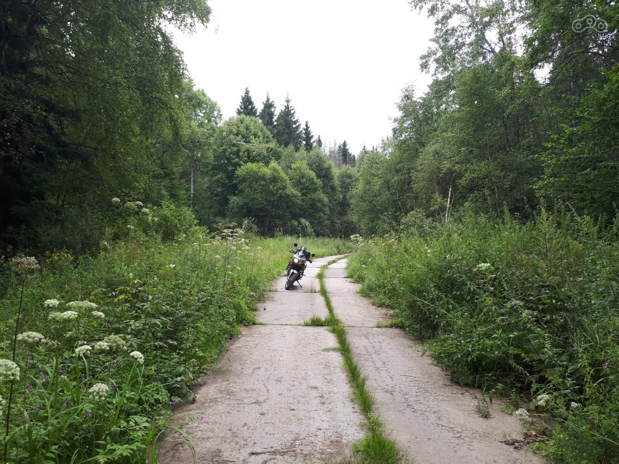 Заброшенная тропка в лесу. Так и не скажешь что всего за парой поворотов эта штука. Двигаемся дальше и следующая точка - всего в нескольких километрах.