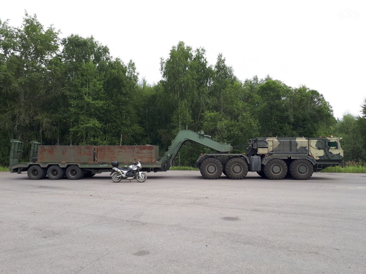 Что вам говорит это фото? О том что мотоцикл стоит возле какого-то металлического транспортного средства. А длину его можете предположить? Ну так я покажу: