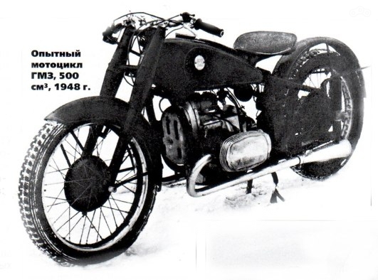 Упомянем так же 500 кубовый гоночный мотоцикл ГМЗ, о нем ничего не известно, осталось только одно фото.