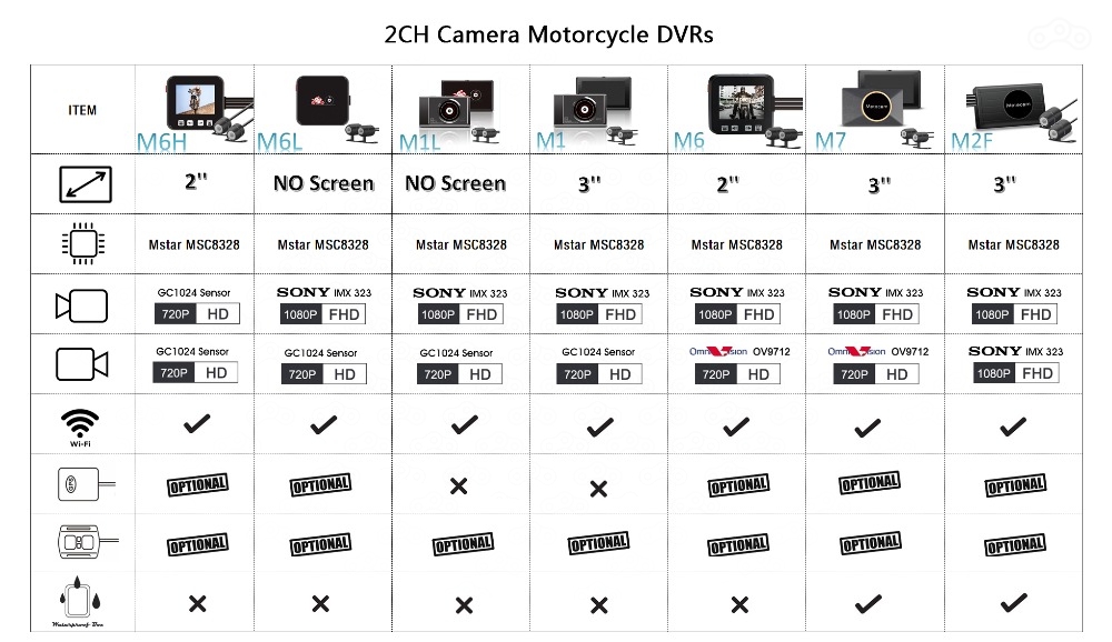 Взял себе VSYS C6L с разрешением 720Р и без WiFi, Качество картинки так себе, но со своими задачами справляется. В принципе, был нужен чтоб отпугивать гайцов разводил на блокпостах по северному Кавказу. Как только им показываешь камеры на мото, у них сразу отпадает всякое желание с тобой разговаривать. Тут же отдают документы ...