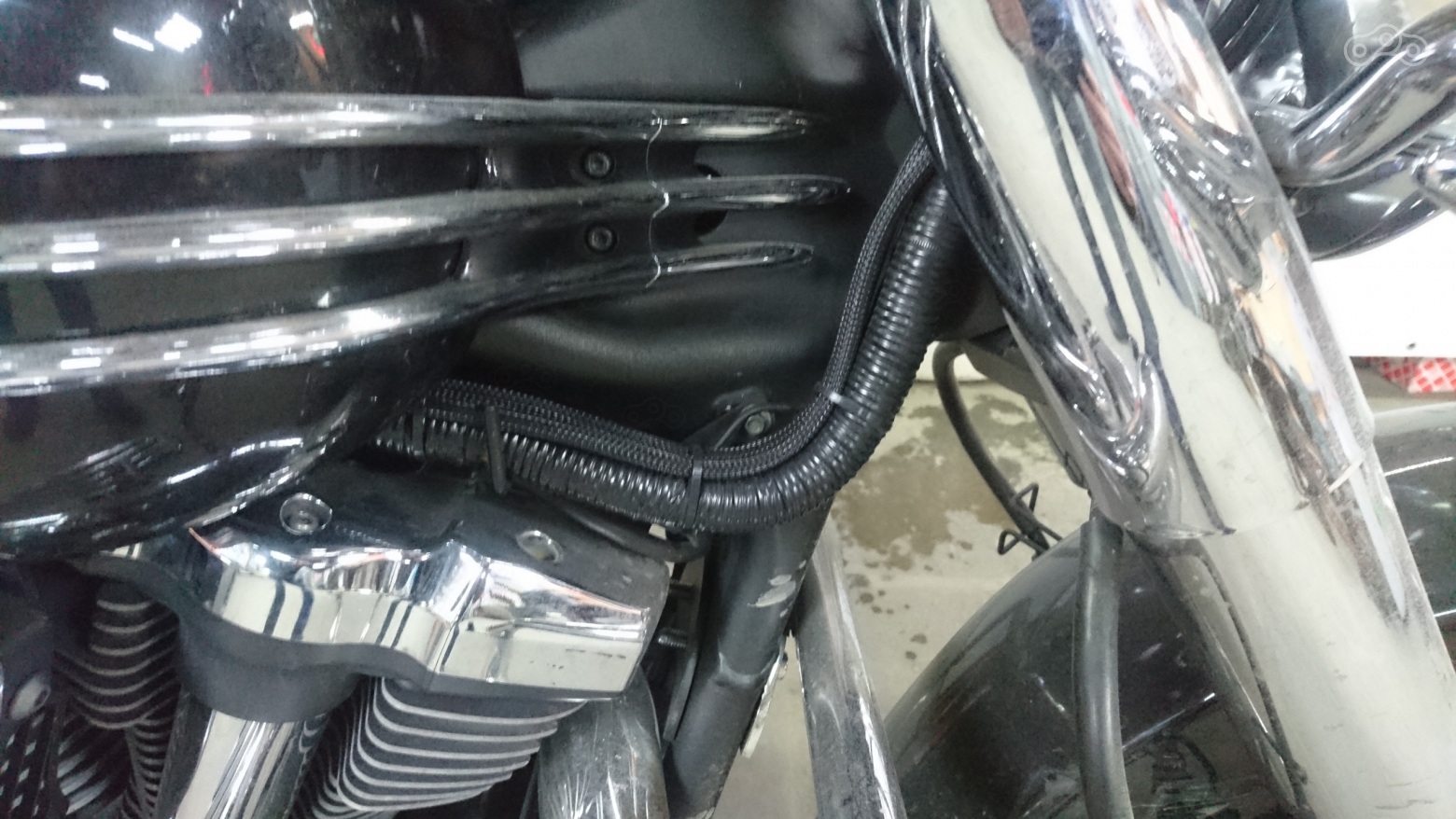 Силовая проводка протянута вдоль штатной, защищена ''змеёй'' и оборудована колбой с предохранителем.