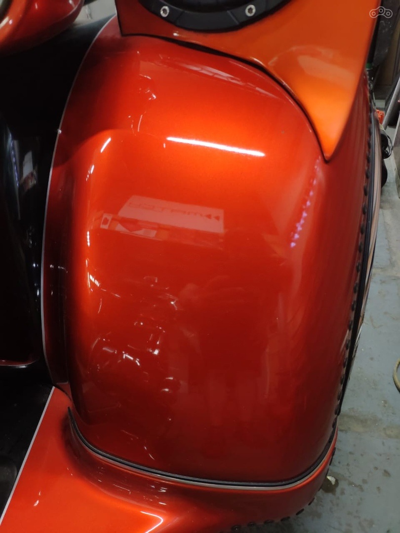Далее наш мастер по полировке подобрал краску, устранил все возможные сколы, царапины и тщательно отполировал весь Трайк, вернув ему прежний насыщенный цвет.