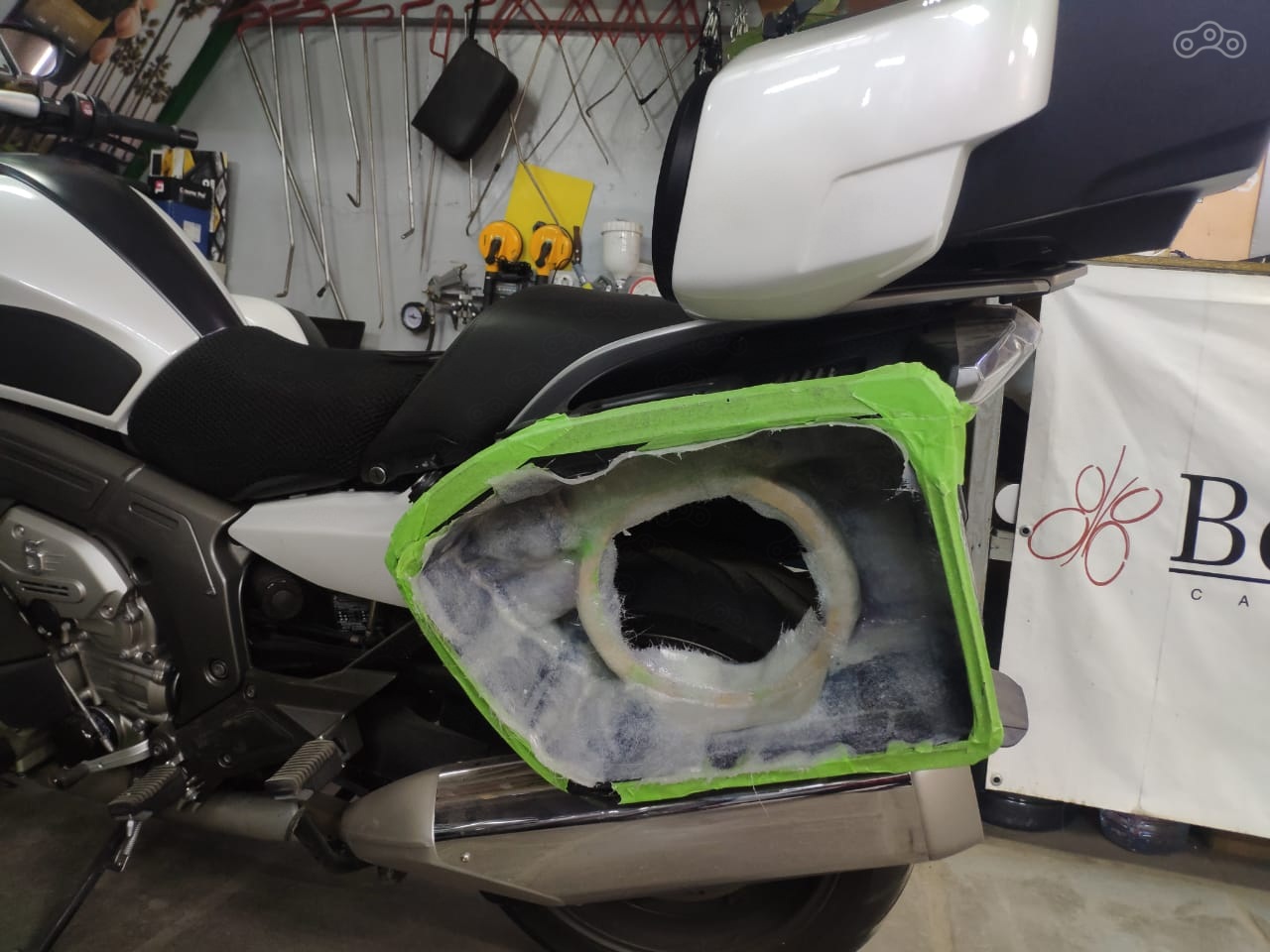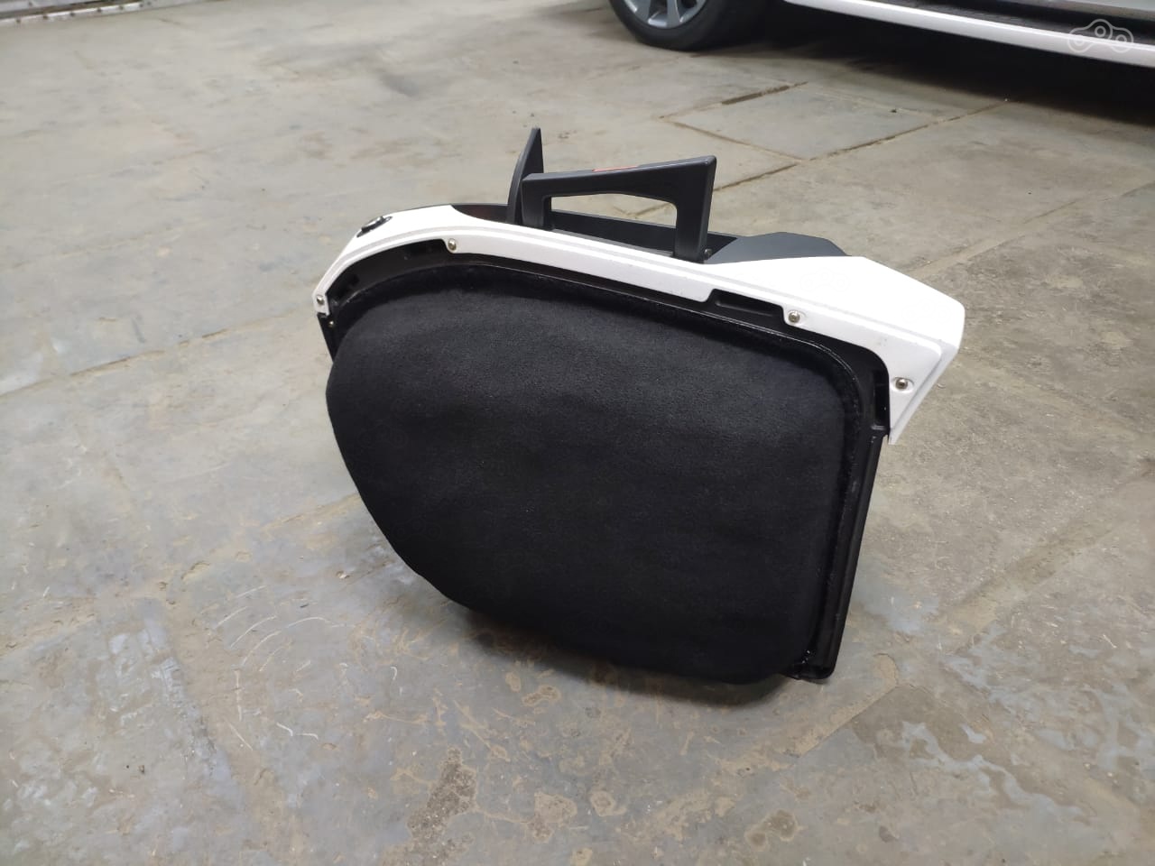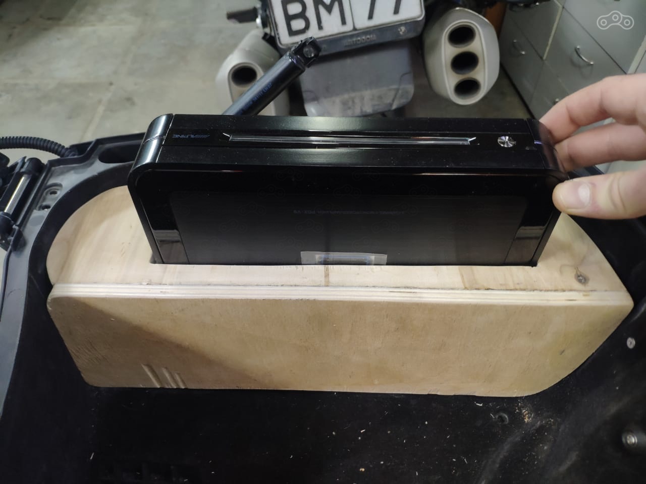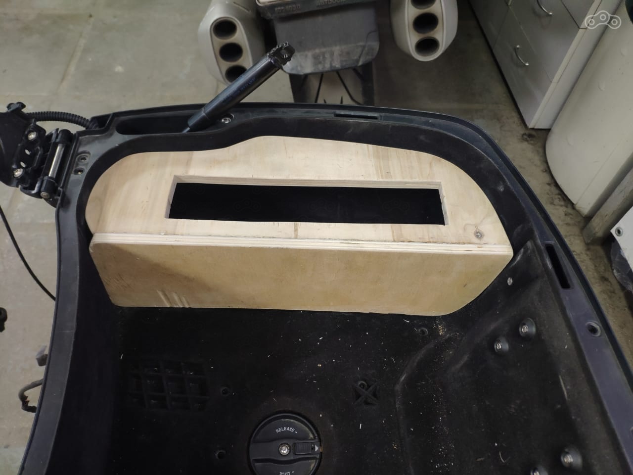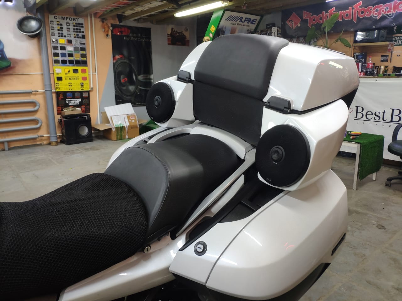 Из левого кофра изготовлен корпус сабвуфера под 10 дюймовую голову ALPINE type R.