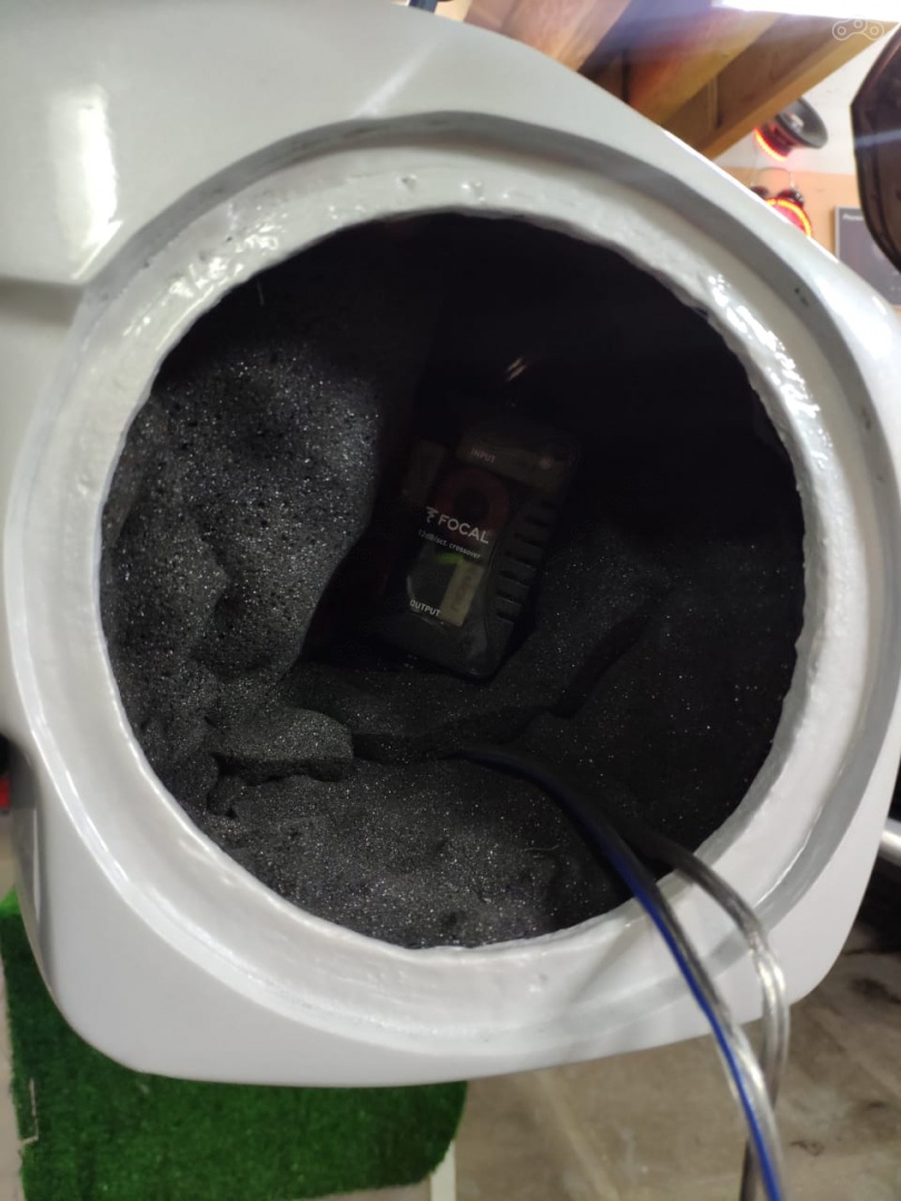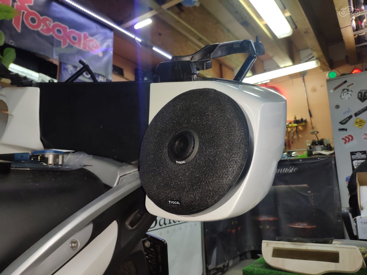 Установлена тыловая акустика FOCAL серии EXPERT, динамики защищены мембранной акустической тканью натянутой на сетки.