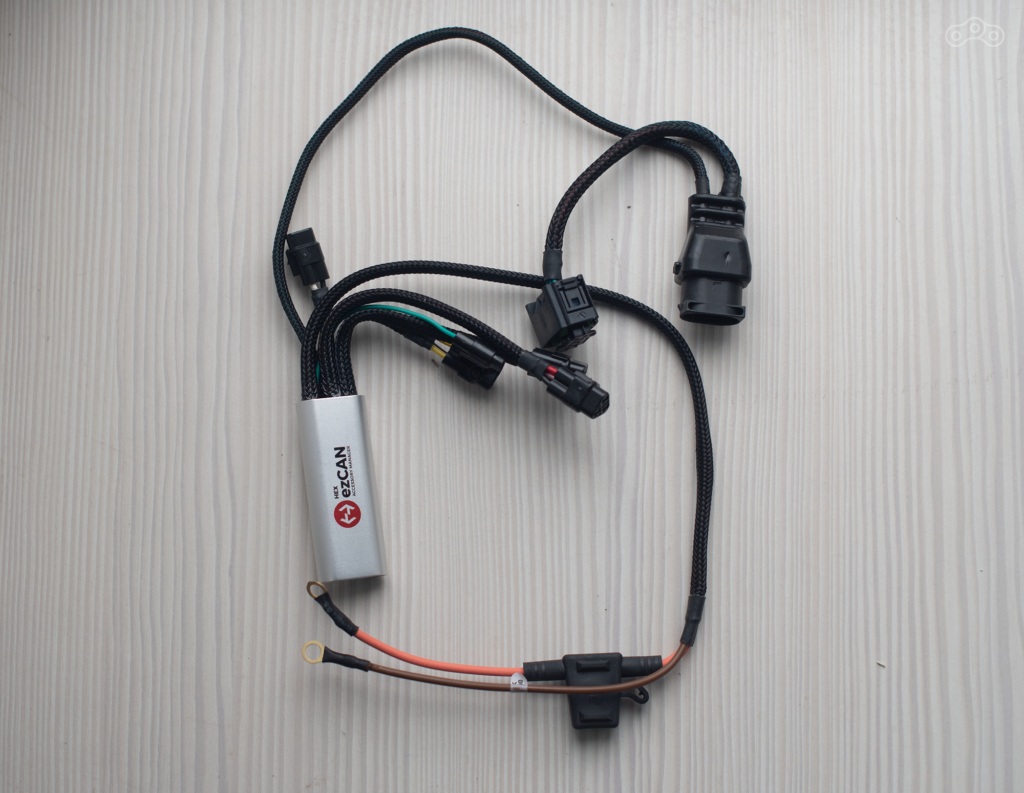 Вариантов подключения допоборудования — прилично. К конкретному разъёму можно подключить обе фары, или только одну и на второй разъём вторую, чтобы выключать только ту, что возле конкретного поворотника, например. Ну как в тачках белая ДХО-обводка в фаре выключается, когда поворотник работает. Разъёмы могут питать дополнительные поворотники, дополнительный стоп или даже раздельные стопы — и действовать соответствующе. Через EzCAN можно запитать дополнительный звуковой сигнал (в комплекте идёт специальный кабель который нужно подключить прям к родной бибикалке, не знаю почему так), подогрев одежды/сиденья и какие-то аксессуары, требующие дежурного питания.
