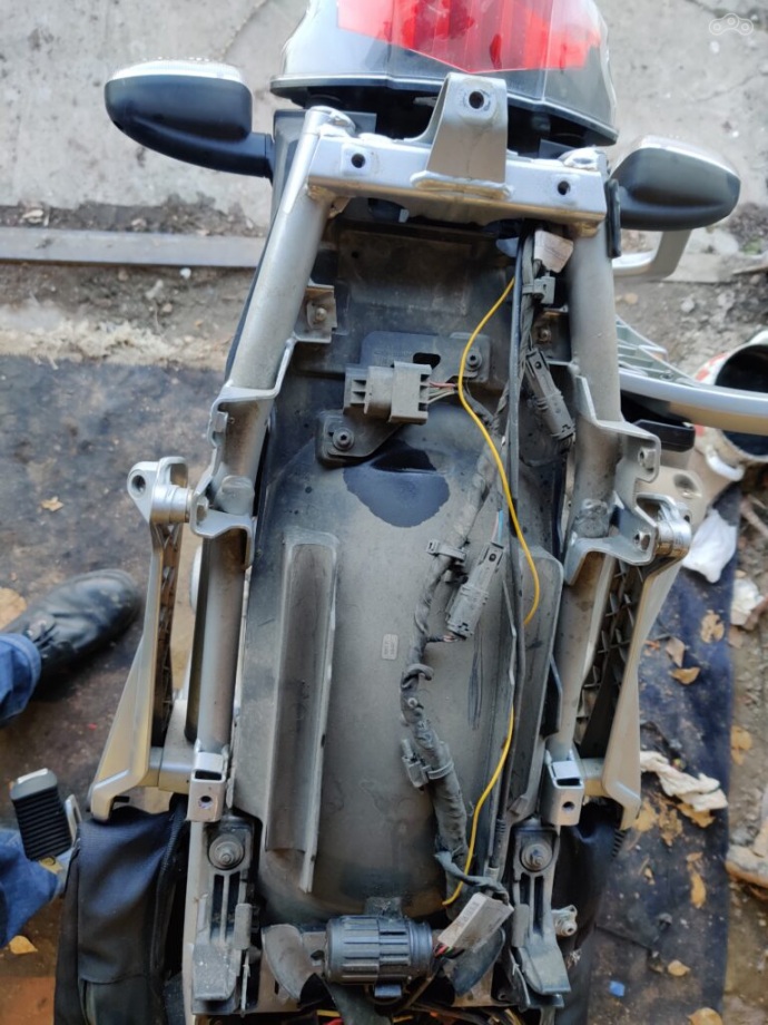 Глубоко в жопе под сиденьем пассажира спрятан нужный нам разъём, он подключен в заглушку чтобы не пылился. Жёлтый провод раньше исполнял роль контрольного, теперь он мне не нужен. Подключаю Ez-CAN к мотоциклу, втыкаю вторую часть удлиннителя в заглушку, собираю заднюю часть мотоцикла обратно, пока не забыл что откуда выкручено.
