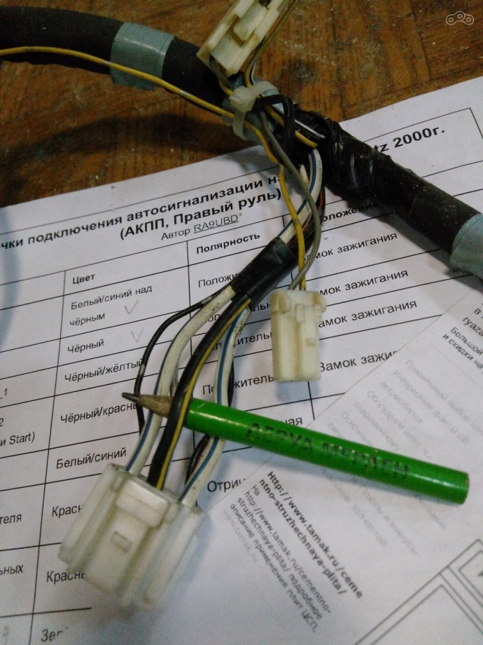 Основная сложность возникла (ожидаемо) с разрывом зажигания. Нужно было найти такой провод, чтобы его разрыв был критичен для системы, откопать его в жгуте, разорвать и подключить к хвостам правильные провода. И рвать все провода подряд чтобы найти нужный так себе идея.