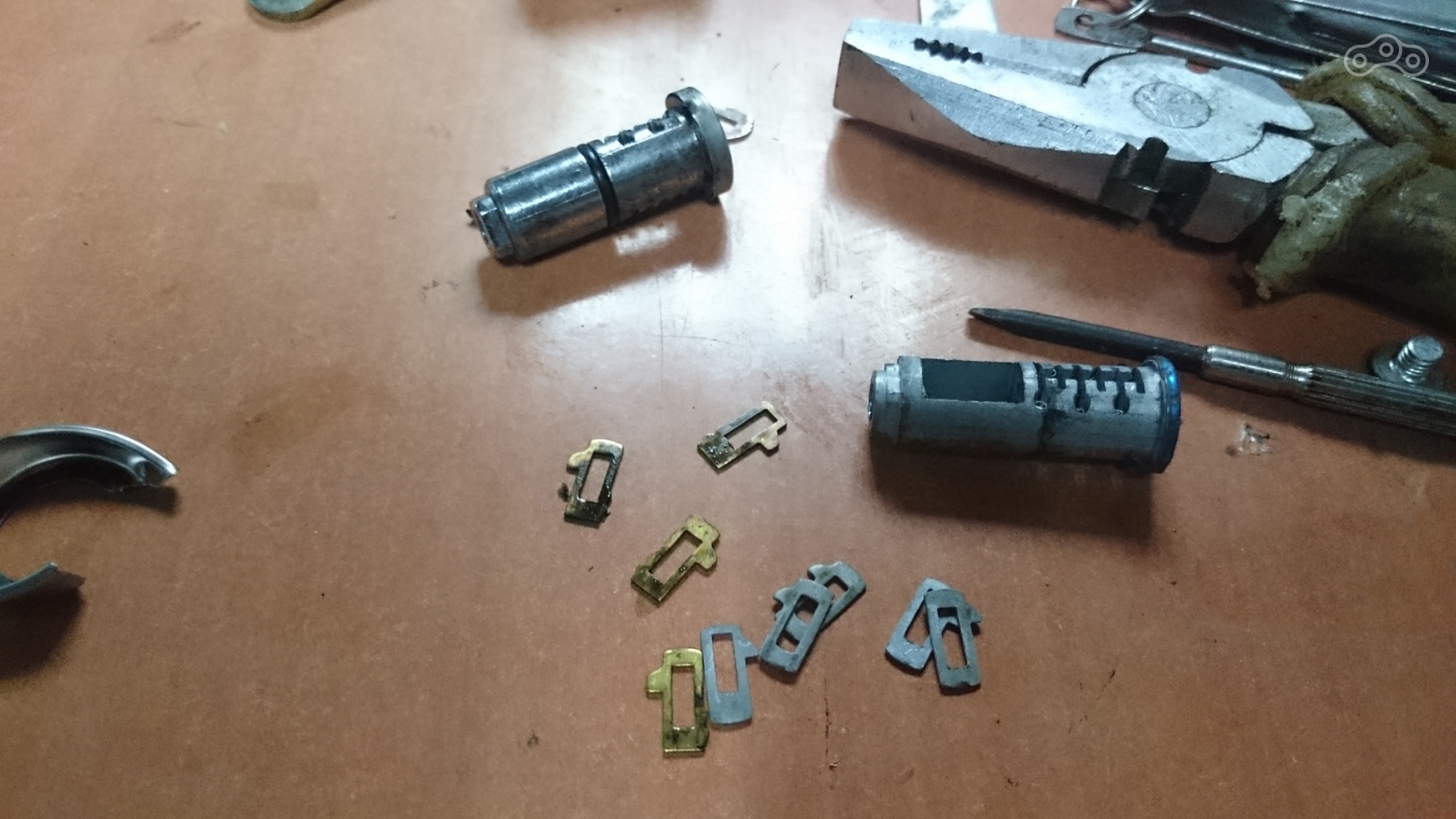 Принцип работы замка прост - внутри находятся подпружиненные (не теряйте эти пружины) рамочки, в которых запилены отверстия. В зависимости от расположения отверстия при вставливании правильного ключа рамка заходит внутрь замка ровно настолько, чтобы не выпирать (или в случае с китаем - не слишком сильно выпирать) с обоих сторон. Слишком сильная выборка на ключе приведёт к тому что рамка останется торчать сверху. Слишком большая толщина в этом месте - наоборот, к тому, что рамка опустится слишком низко - и начнёт выпирать снизу.
