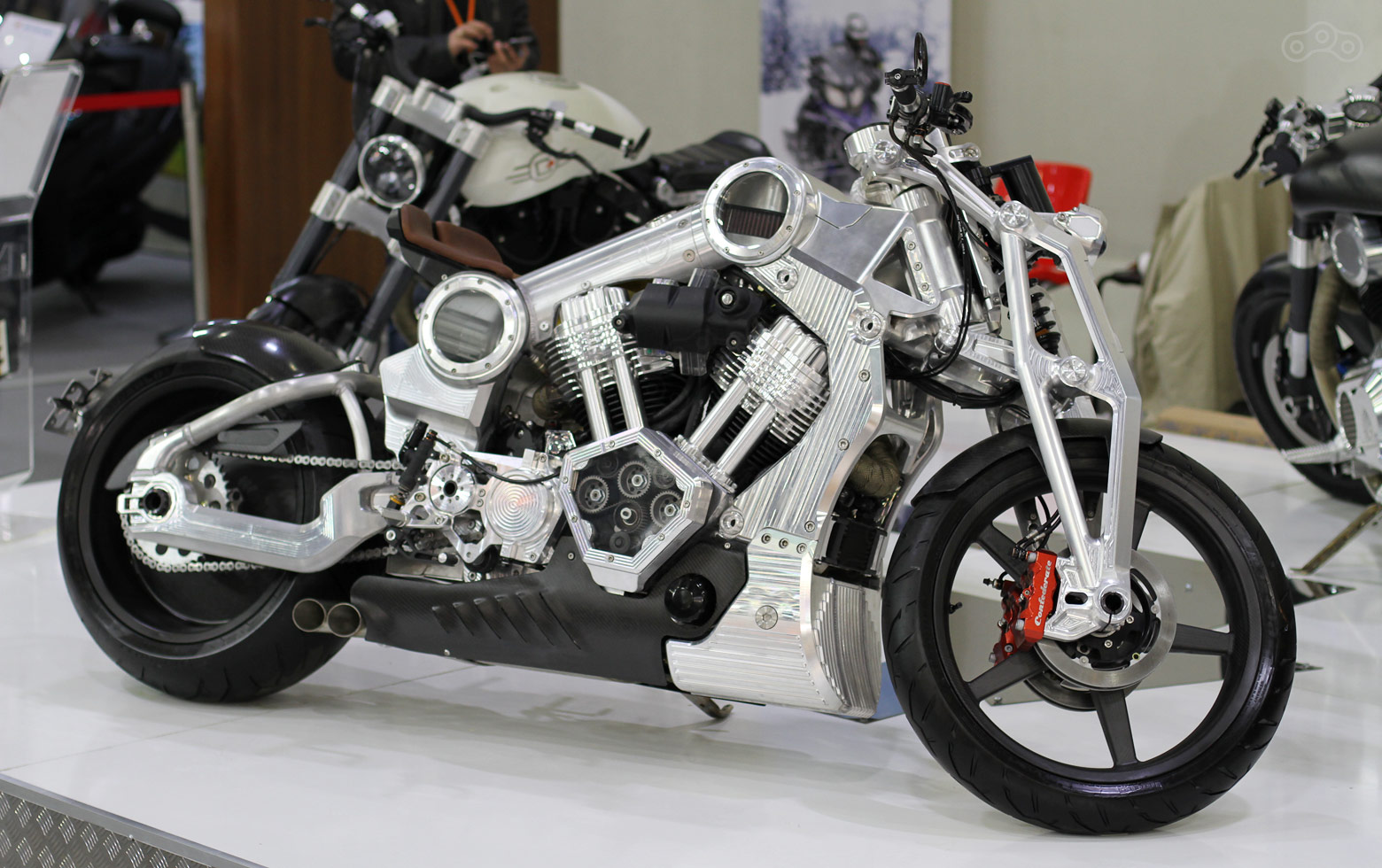 Еще одной премьерой из мира эксклюзивных мотоциклов стал Confederate P51 «Fighter». Этот байк – настоящее произведение искусства, цельнометаллический колосс, созданный для максимально эффективной переработки топлива в адреналин.