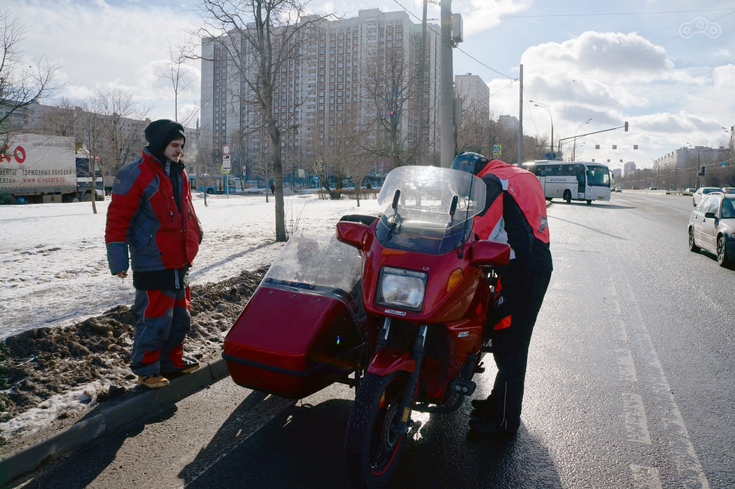Не очень ранний подъём, три комплекта экипа в багажник и вперёд — собирать друзей Егора и Лёху по домам и всей гурьбой откапывать гараж. Изрядно пропотев, мотоцикл всё же вызволили и, с небольшим запасом по времени, выдвинулись в Истру.