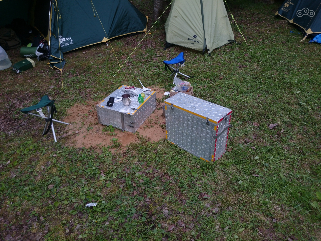 К началу выступления мы были уже на низком старте — все вещи собраны и лежат неподалёку от сцены чтобы стартовать сразу как дослушаем. Кофры мои странные оказались весьма полезны в качестве стола и табуретки, однако таскать их очень неудобно — угловатые, ручек нет, да и тяжелые. Недавно я уже писал в комментах что буду их менять — этим я сейчас занят, но пока что-то выкладывать рано. В результате пока товарищ не сбежал окончательно (ему на машине ехать) я его подрядил мне помочь и мы дотащили кофры до мотоцикла. И если когда мы ставились на парковку при входе у нас проверяли талончик, то к вечеру воскресенья ворота были уже открыты, а «парковщик» — исчез. Мда… Вернёмся к музыке!