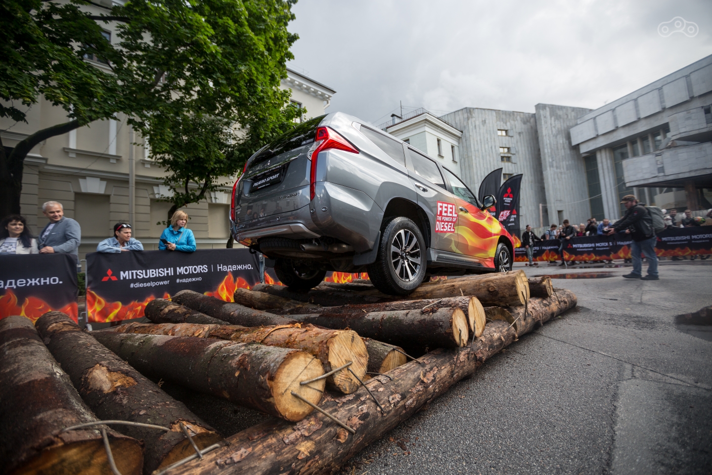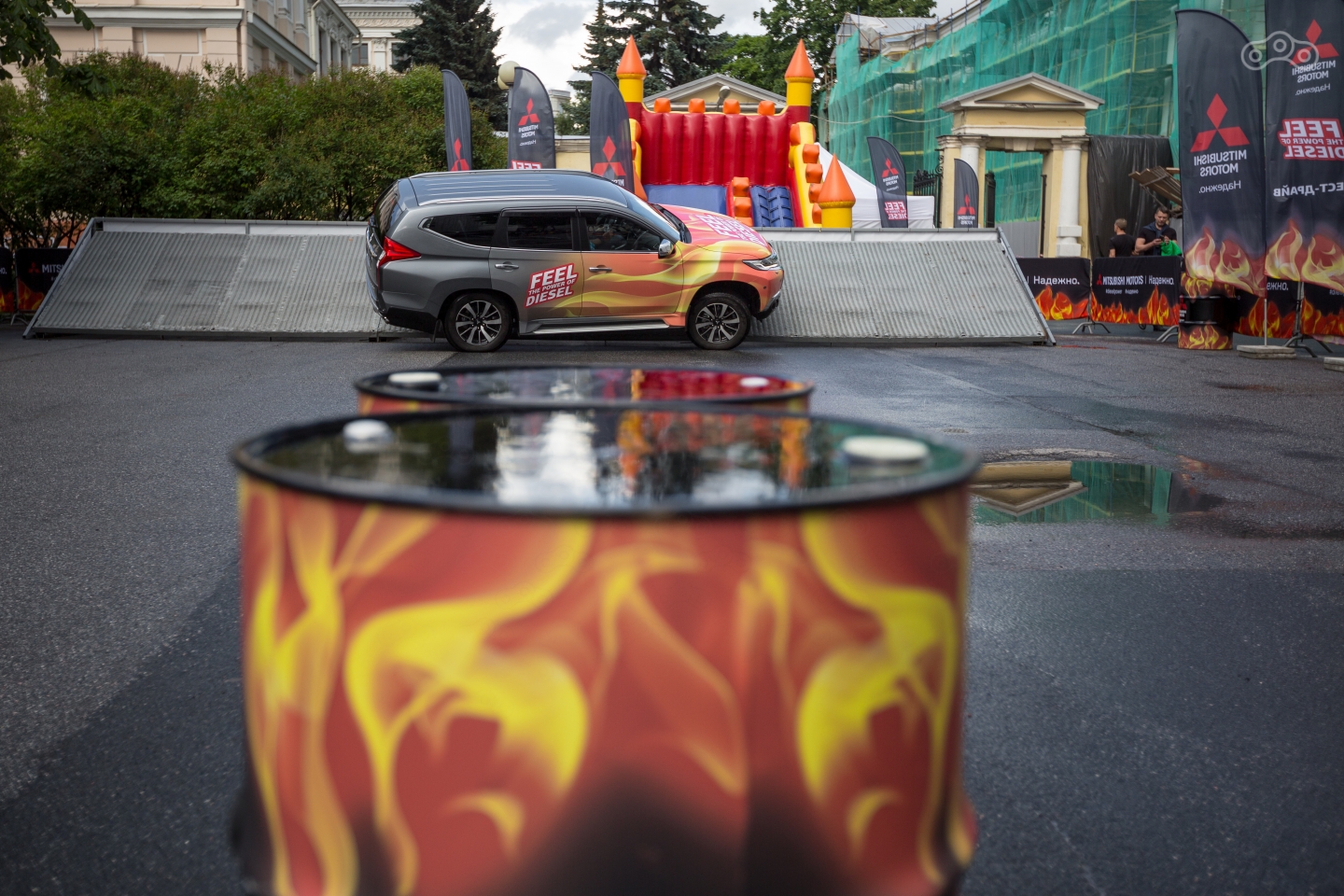 Специально для тестов новенького Mitsubishi Pajero Sport на Дворцовой площади построили настоящую полосу препятствий