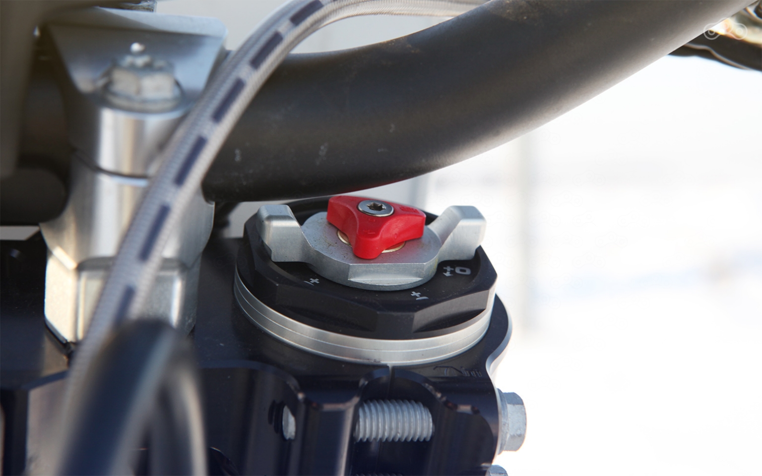 А вот оценить внешнюю эстетику – напротив. Чего только стоят фрезерованные траверсы с выгравированным на них моментом затяжки болтов, фиксирующих перья! А барашки регулировки вилки WP, позволяющие настраивать подвеску прямо в перчатках, а стильный квадратный диодный фонарик в охвостье и минималистичная жк-панель, отображающая скорость, счетчик моточасов с лампами «чек энджина», индикатора дальнего света и резерва в баке…