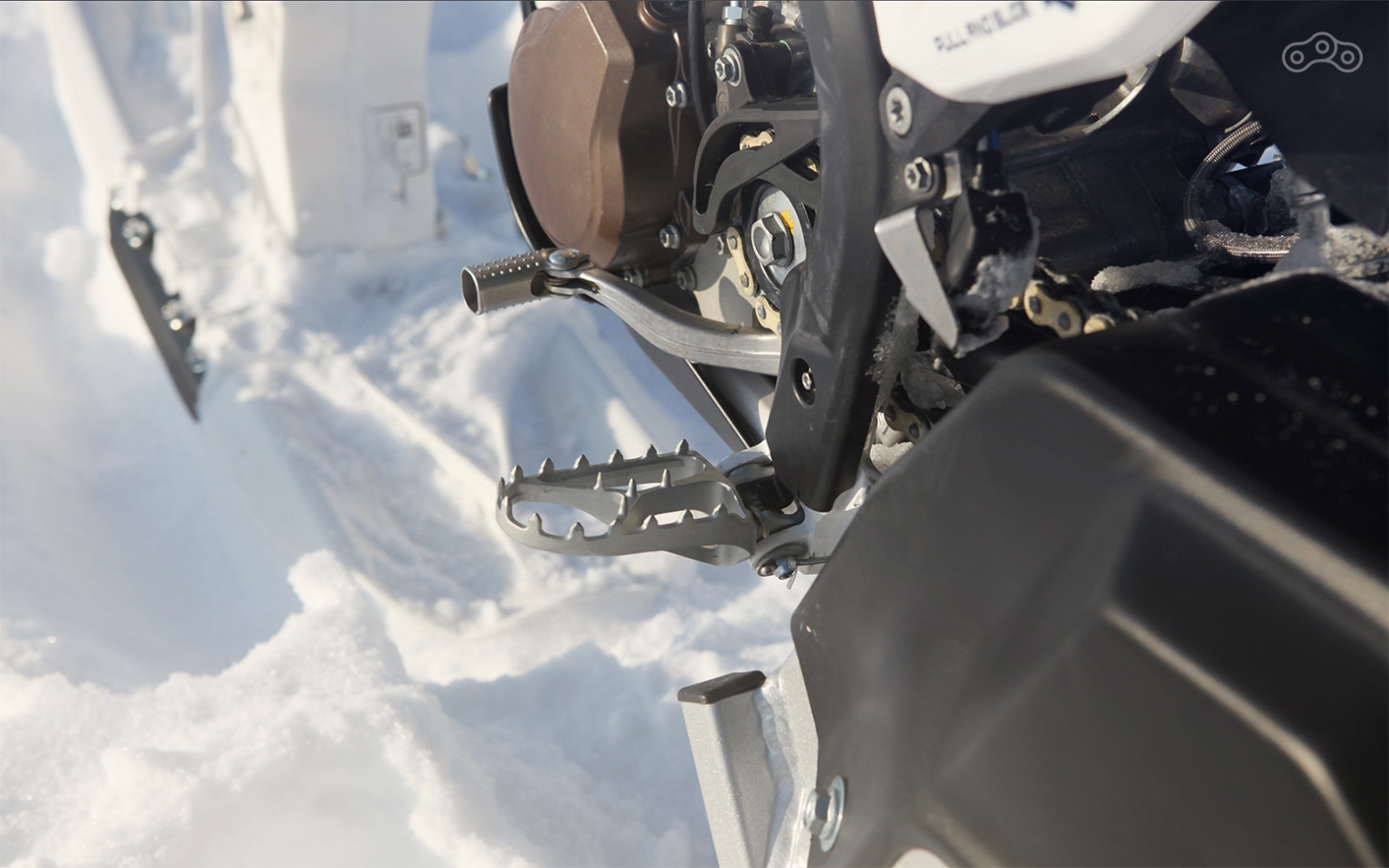 Но даже отбросив внешнюю безупречность, говорить о FE501 можно долго: изумительное шасси, топовые компоненты и великолепнейший 510-кубовый мотор, мощность которого реализовать смогут далеко не все – эталонный мотоцикл с сухой массой в 109 килограмм, до которого я, скажу по секрету, до сих пор не дорос, считая более чем достаточной четырёхтактную 250-ку. Но это мотоцикл «здорового человека», а что же с его снежной версией?