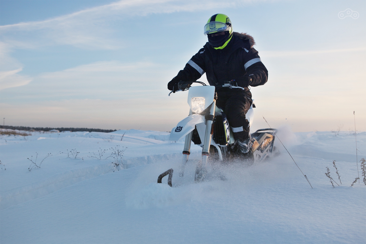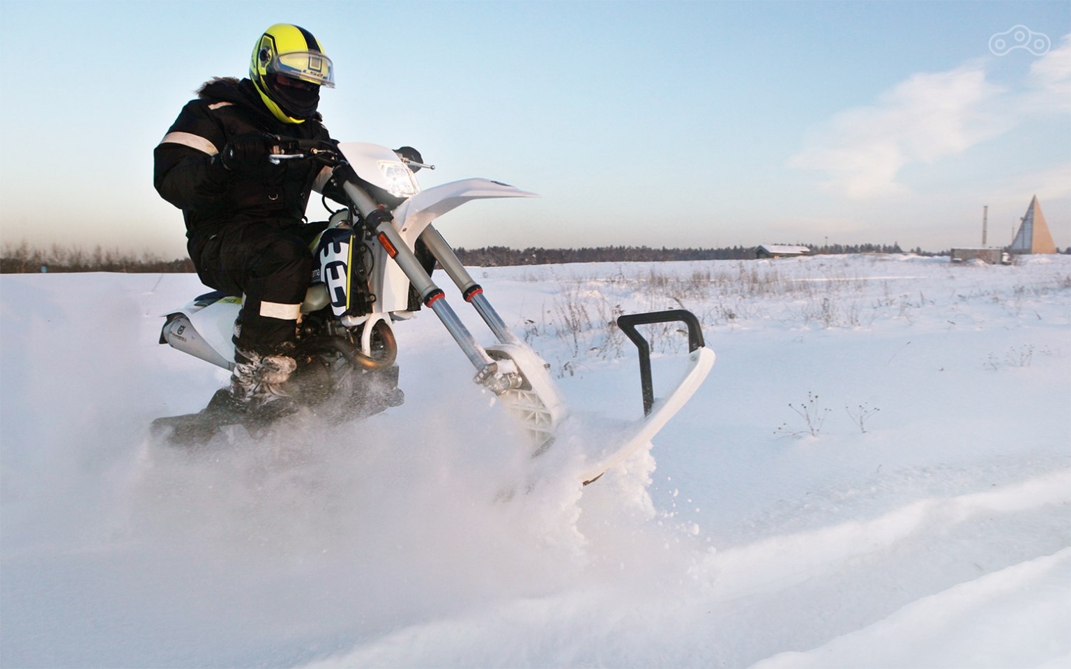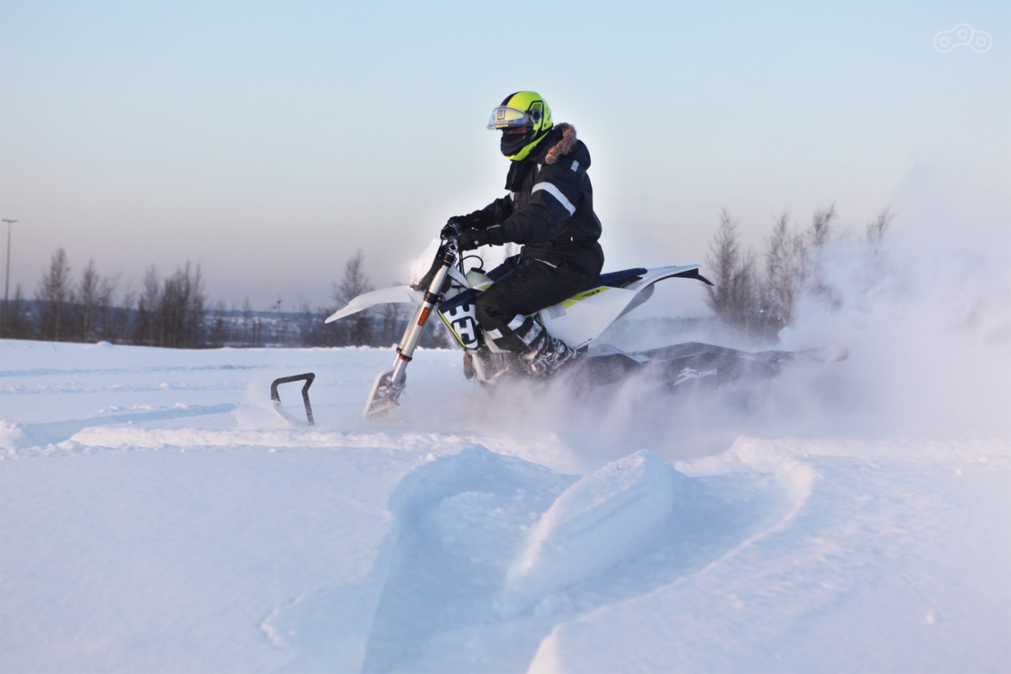 Для начала стоит уточнить, что Snowbike это не конкретная модель шведского бренда, а то, что получится, если вы возьмёте мотоцикл Husqvarna и установите на него комплект DTS 129 от компании Camso, предлагаемый официальный дилером марки. Мотоцикл Husqvarna может быть любой, с поправкой на мощность двигателя: для езды на гусеницах подойдёт четырёхтактный мотор с объёмом от 450 см3 или двухтактный 300-кубовый.