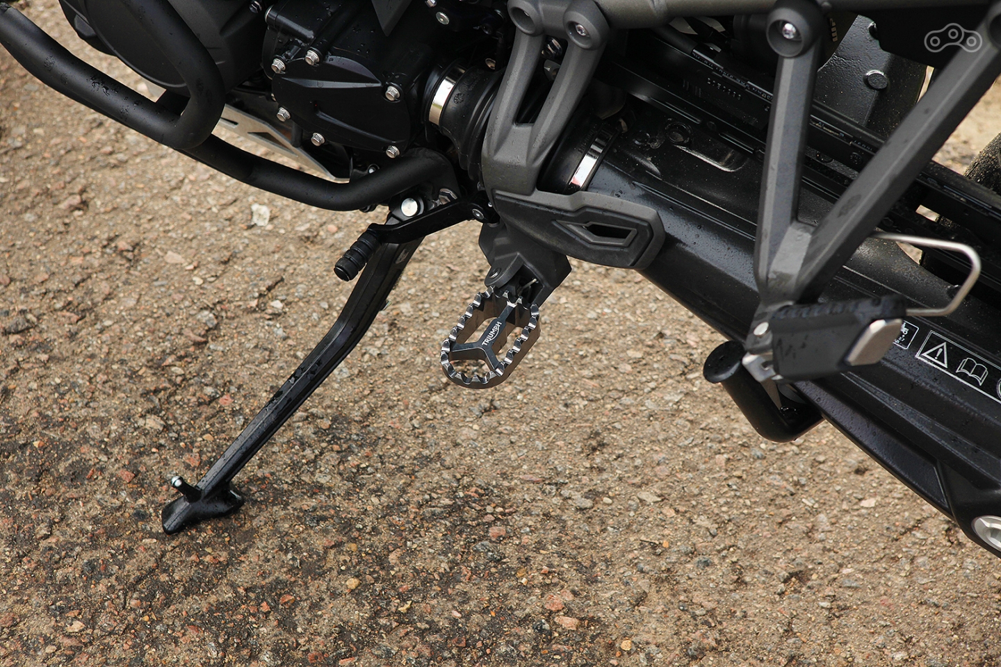 Боковая подставка выглядит круто, у меня такая же на Ducati Monster. Вот только съезжать с асфальта с ней страшновато.
