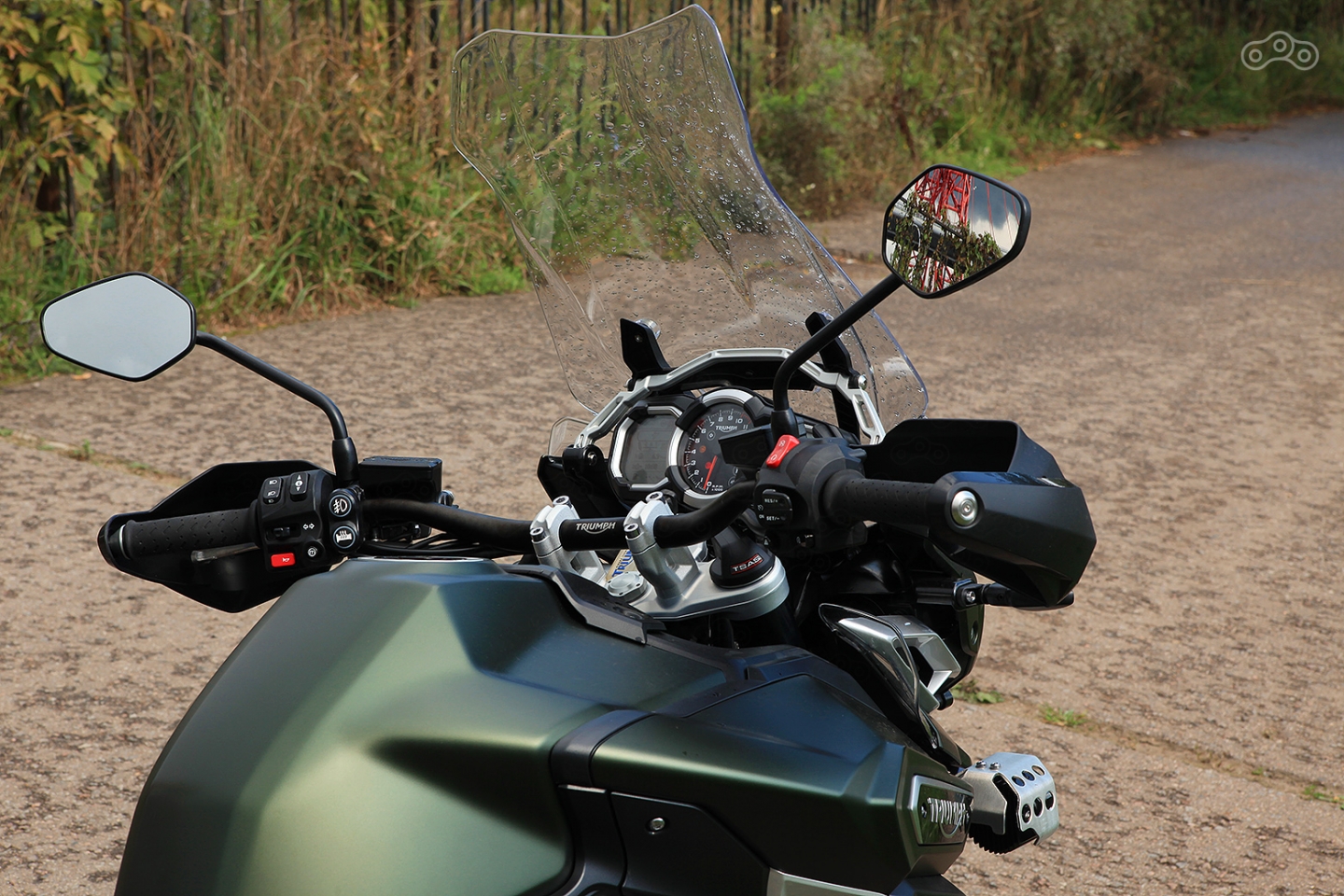 Попробуйте поставить Tiger рядом с каким-нибудь 2-цилиндровым V-образным конкурентом вроде KTM Adventure 1290 в песчаный подъём: там, где тракторные низа и пульсация помогут одному мотоциклу медленно, но верно ползти вверх, обороты и мощность рядного мотора в середине и наверху просто зароют заднее колесо. Чудес не бывает, и любой туристический эндуро всегда компромисс между внедорожными способностями, комфортом и динамикой. Просто британцы выбрали последние два пункта, и, нужно сказать, получилось у них отлично.