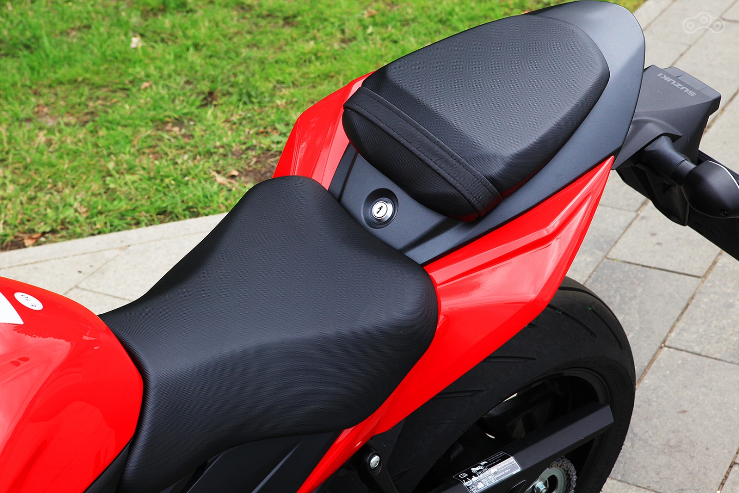В остальном без нареканий: дизайн приятный, линии, пусть и не самые гармоничные, зато стремительные и наверняка будут по достоинству оценены большинством тян из «мотопары», а фара, не слишком отличающаяся от оптики предшественника GSR 750, несмотря на лампы накаливания, выглядит достойно и ярко. И пусть поворотники кажутся примитивными, дизайн кормы спасает только диодный фонарь, короче – местами консервативно, но в целом приятно.