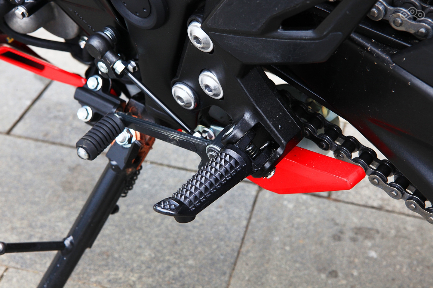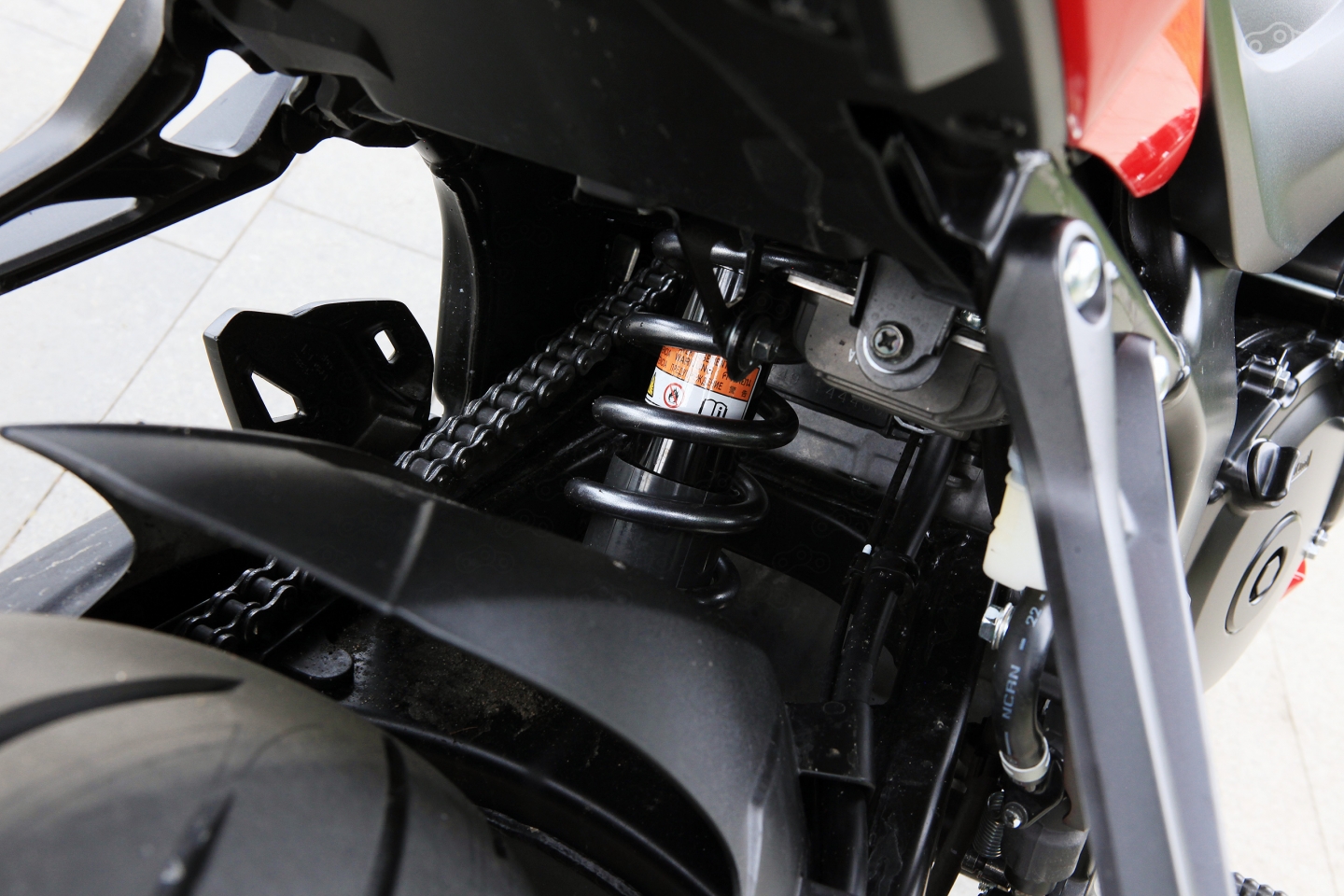 Туда же и управляемость – лёгкий мотоцикл отличается острой геометрией и породистыми повадками, новая телескопическая вилка перевёрнутого типа имеет регулировку жёсткости, а маятник, который теперь изготовлен не из профиля, а является цельной алюминиевой отливкой, практически не играет в поворотах. Вдобавок, задний моноамортизатор имеет не только регулировки, но и крепится к маятнику через рычаги, обеспечивающие прогрессивную характеристику, так что в поворотах можно уверенно выкручивать рукоятку газа, наваливая на все деньги.