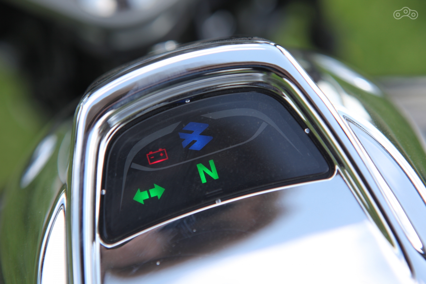 Это же можно сказать и про новую цифровую приборную панель – вместо аналогового спидометра с аналоговым же указателем уровня топлива, теперь круглый монитор с часиками, одометром, спидометром и ленточной шкалой уровня топлива, отображающей погоду на луне. А контрольные лампы переехали на бак – взгляд сюда падает не часто, от чего и про выключение поворотников за рулем постоянно забываешь.