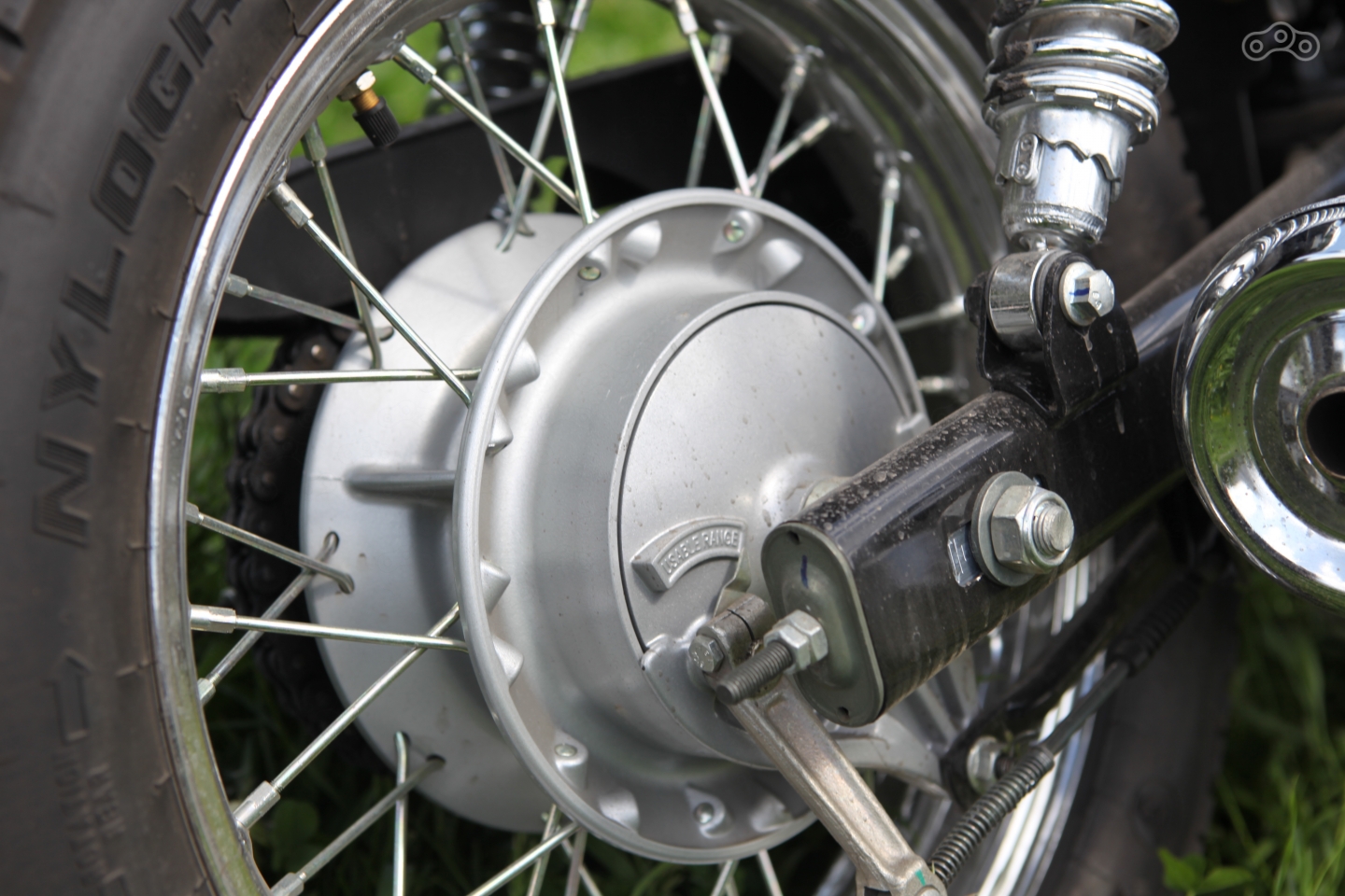Ну какой это мотоцикл? Это же самый настоящий макси-скутер с высоким центральным тоннелем, и руль расположен похоже, и недостаточность задней подвески и широкое седло, всё встаёт на свои места. И даже тормозит аппарат как компактный «макси» – передняя двухпоршневая «плавающая» скоба, не слишком информативная, не способная задрать аппарат в «стоппи», но достаточно эффективная для лёгкого и не слишком быстрого мотоцикла в сочетании с абсолютно не информативным задним тормозным барабаном, требующим большущего усилия для блокировки заднего колеса.