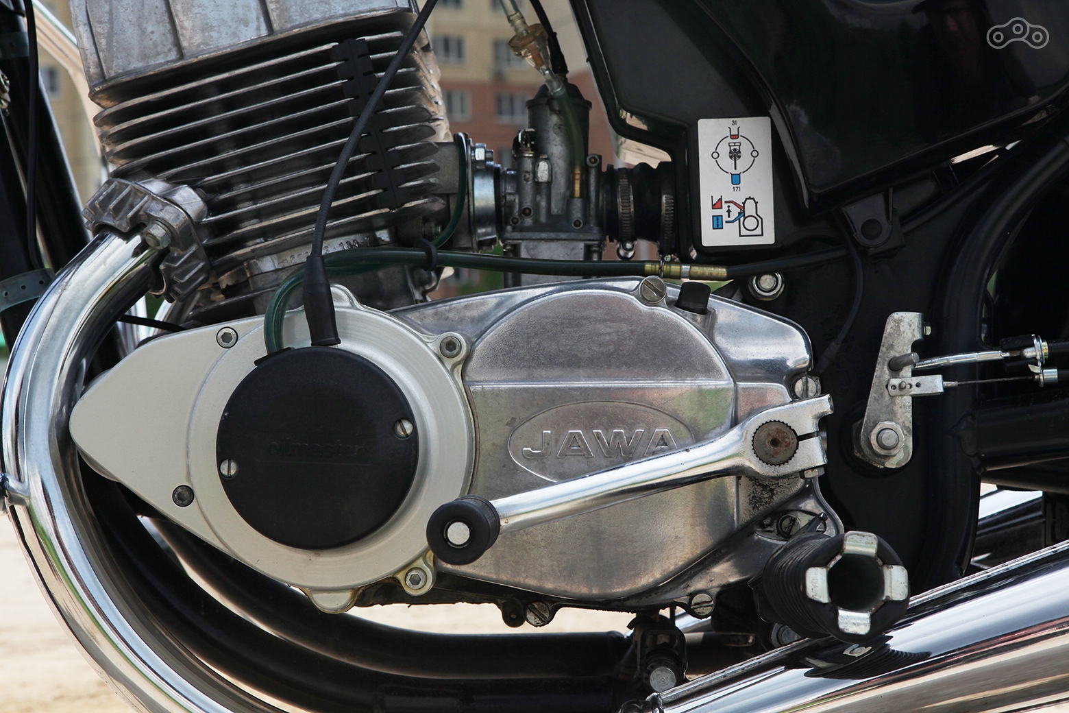 Мотоцикл – почти новый, отличающийся от аппаратов нынешнего, 2018 модельного года лишь наличием системы раздельной смазки «ойлмастер» и электростартера. Да, на новых мотоциклах, как и на старых советских, этих опций не будет. Назад, в будущее! К слову, сам мотоцикл, о котором сегодня пойдет речь, появился аж в 1984 году, назывался он Jawa 638-5-00 и фактически был переходной моделью между предыдущим поколением с индексом 634 и новым, получившим иной дизайн оперения и индекс 638-0-00 в 1987 году.