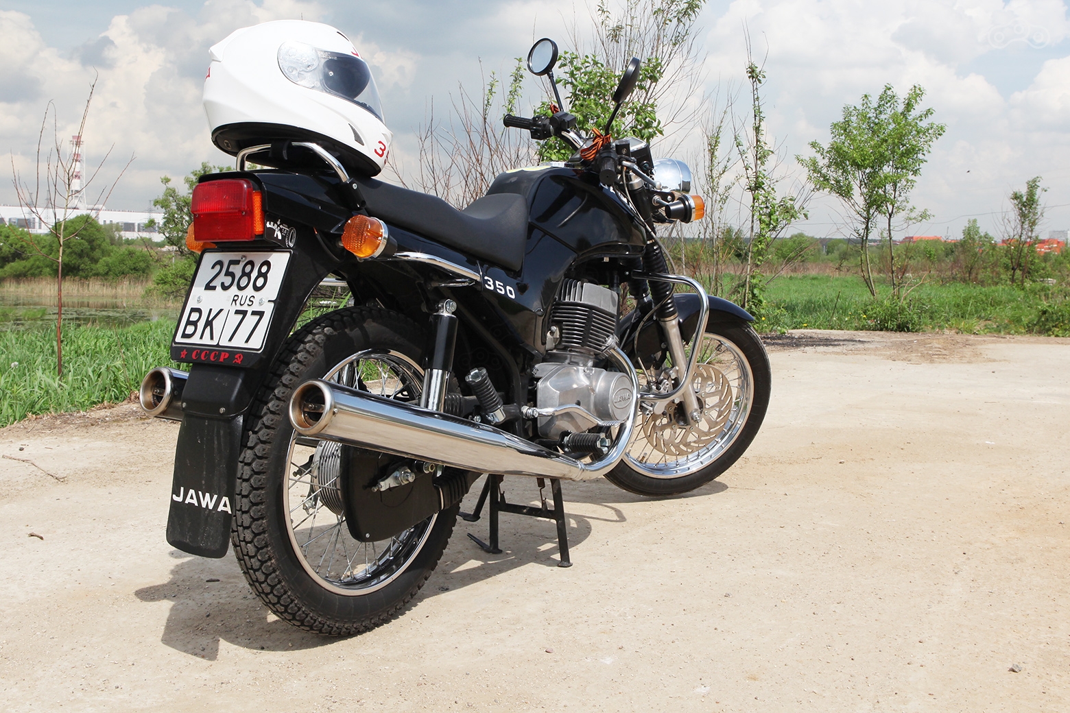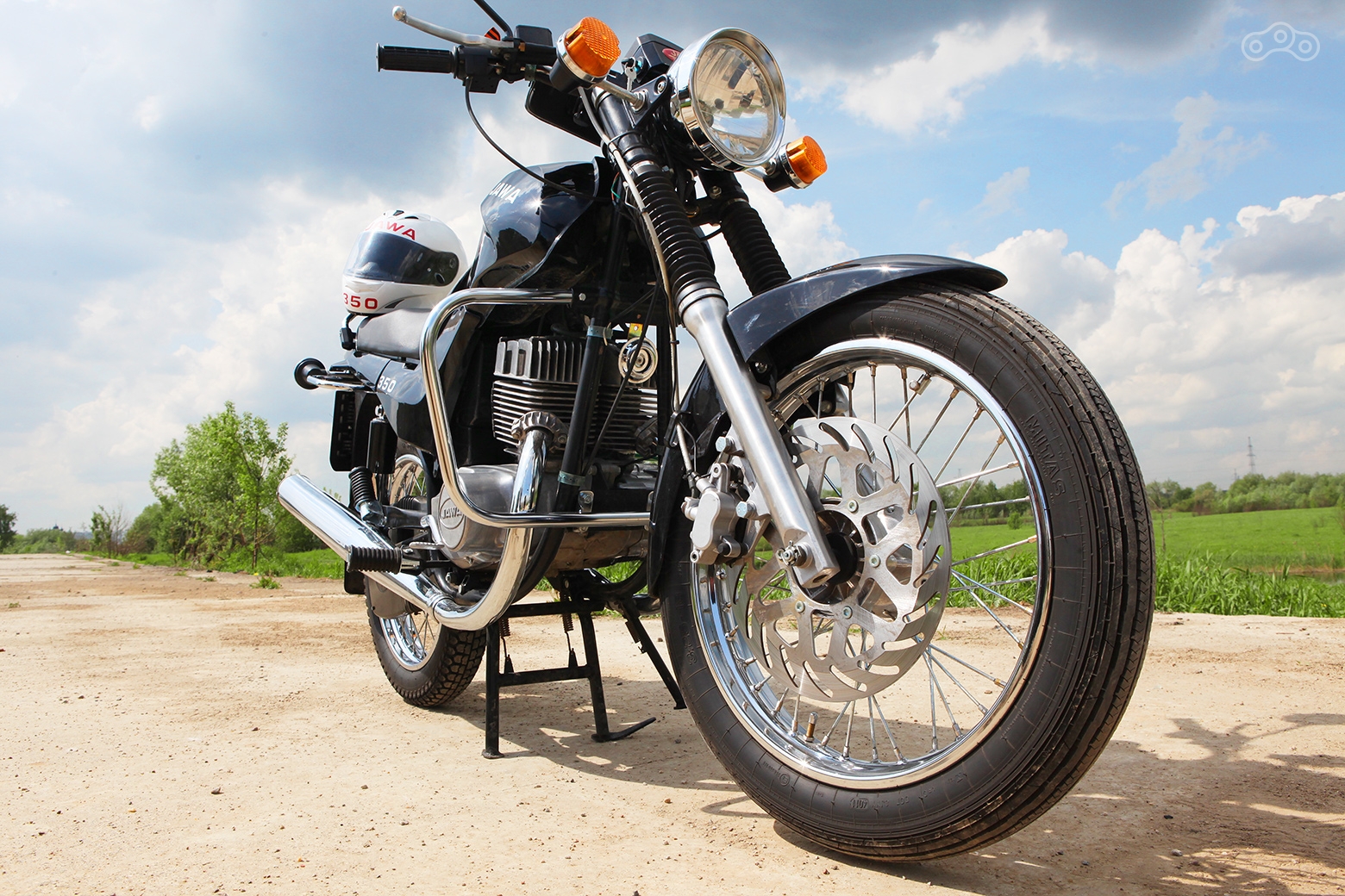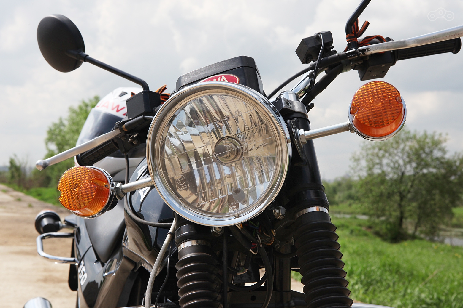 Впрочем, доработать дисковый механизм, при желании, проще, чем барабанный. Это же касается и подвесок, ведь сегодня ничего не мешает залить в вилку масло погуще. Зато колеса на спицах и хромированных ободах, глушители и олдовые поворотники с блестящими ободками смотрят вверх, цепь, спрятанная в фирменный «явский» кожух и красивый алюминиевый картер двигателя задают настроение, которого не добиться тюнингом чего-то другого.