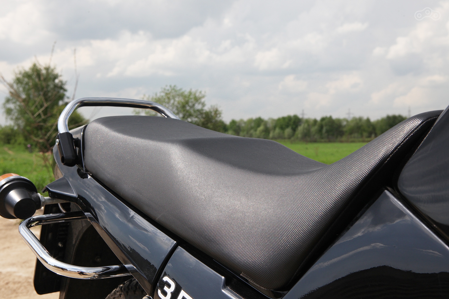 Зато маневренность – сухая масса всего 149 килограмм, мотоцикл узкий, руль поворачивается на довольно широкий угол, отчего протискиваться в междурядье сплошное удовольствие. Приятно удивили и подвески – плотные, даже слишком, задние амортизаторы, не способствуют раскачке, жаль, что вилка несколько мягче и отчаянно клюет на торможениях, но, опять же, в сравнении с современными стандартами.
