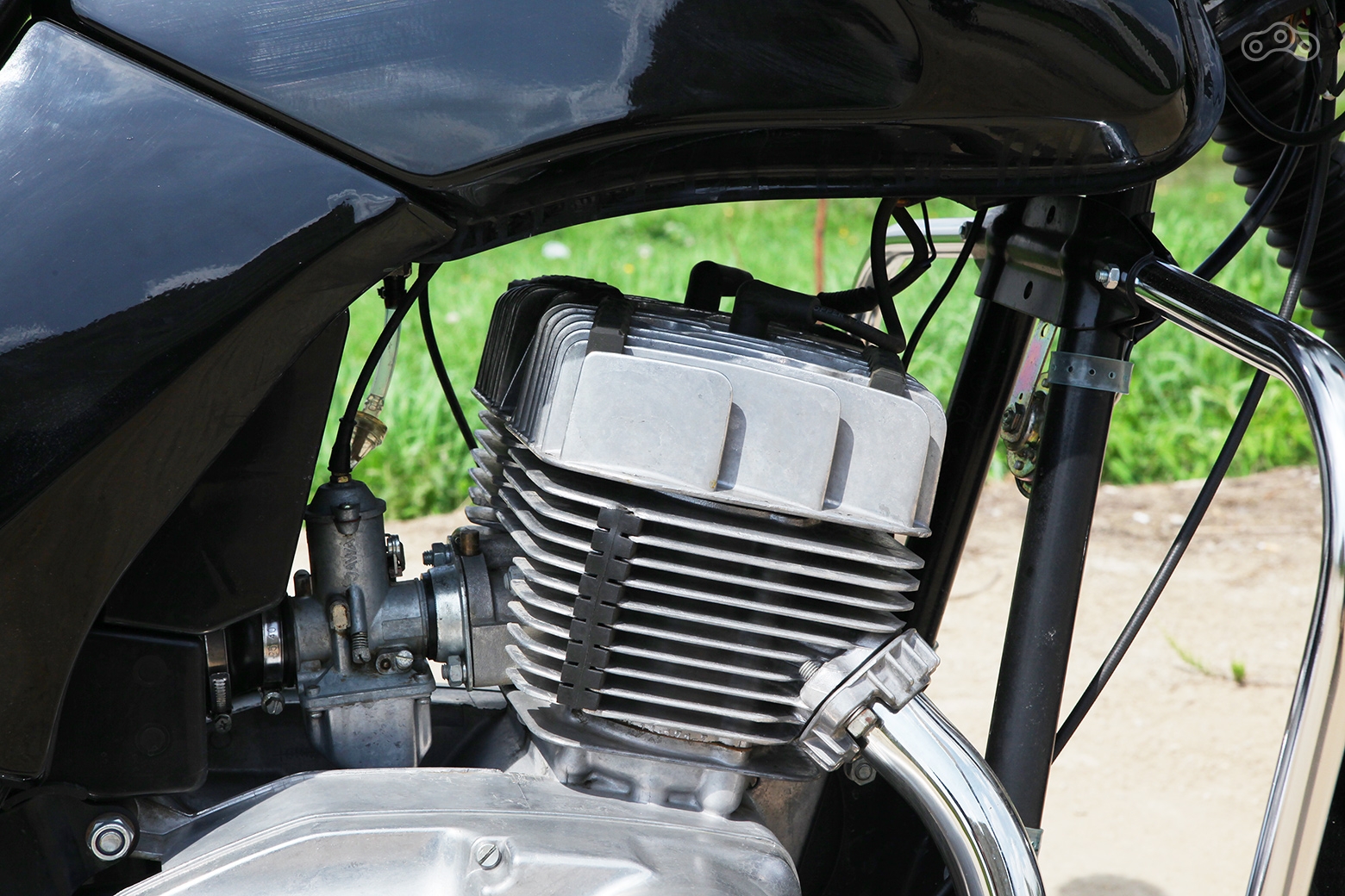 А вот мотора по сегодняшним меркам просто нет: 23 лошадиные силы, которые, по слухам, можно увеличить до 26 просто вынув ограничительную шайбу, расположенную между карбюратором и цилиндром, решительно мало для мотоцикла в двадцать первом веке. Двухцилиндровый двухтактный мотор не спешит раскручиваться и нехотя отзывается на чрезвычайно тугую рукоятку газа, вибрации, переходящие в зуд, характерный звук и запах.