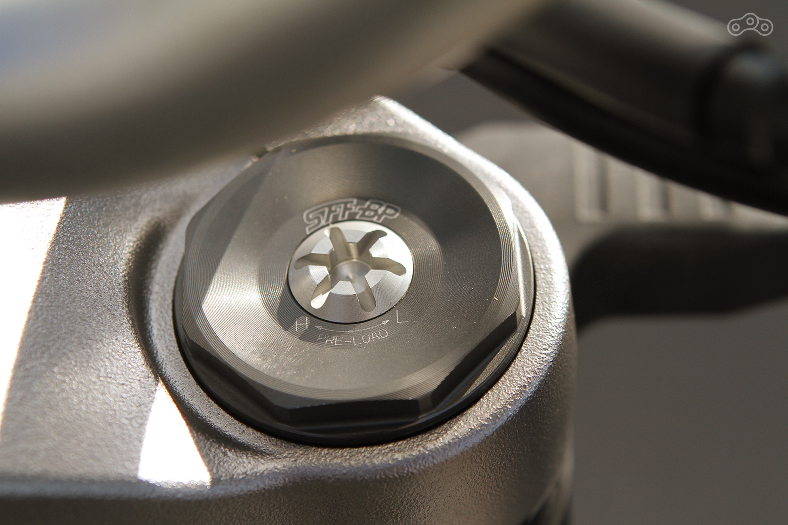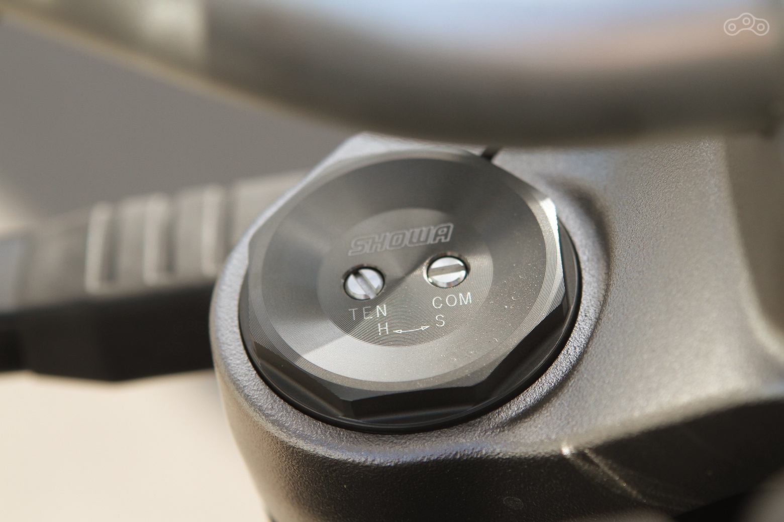Шасси вообще сильно шагнуло вперед и по эмоциям и по качеству: подвески регулируемые, «перевертыш» с толстенными трубами имеет раздельную регулировку. На правом пере – преднатяг пружины, винт которой можно вращать обычной рублевой монетой, на левом – гидравлика, здесь уже не обойтись без отвертки, мягче, жёстче, всё к вашим услугам.