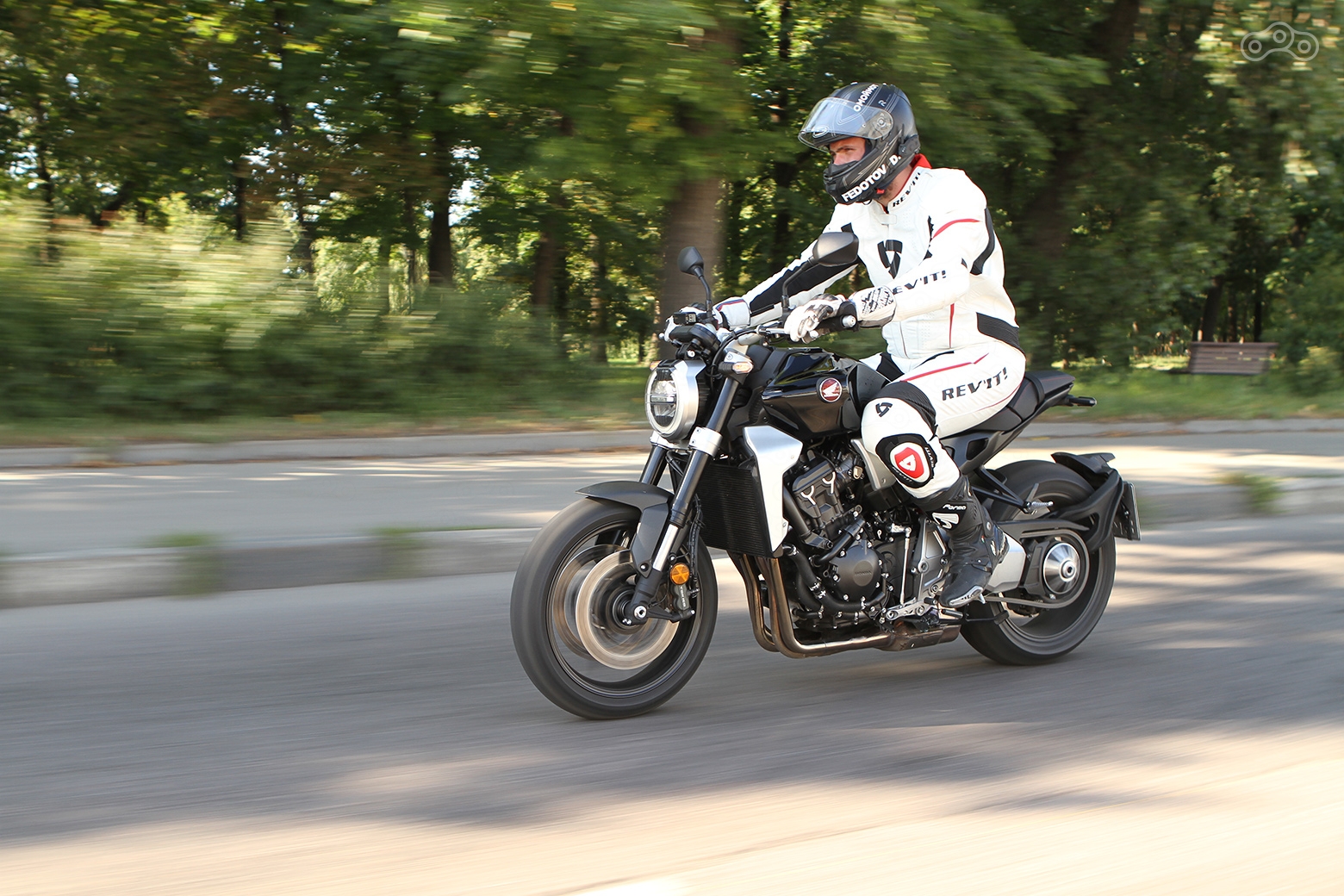 Что же до мотора, то здесь без откровений: прекрасный агрегат перекочевал сюда с флагманского спорта, растеряв по пути кучу лошадей, зато нарастив жирка в середине. Хоть 146 кобыл и укороченные передачи срезали максимальную скорость, зато улучшившие динамику. По заявлению «Хонды», разгоняется до 130 CB1000R лучше, чем CBR1000, и в это охотно веришь, особенно наблюдая цифру 150 на спидометре, выкручивая вторую передачу с уже переставшим вращаться в воздухе передним колесом.