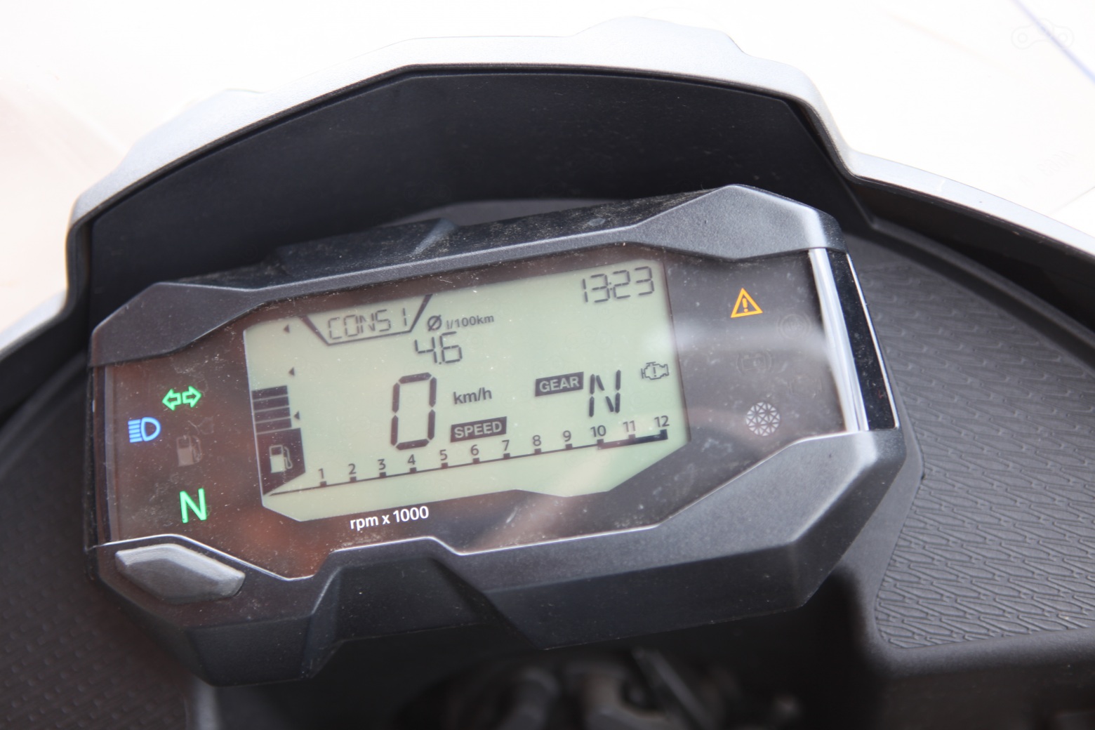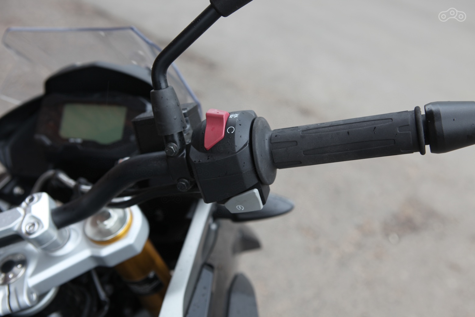 Неплох маленький гусь и в седле, с поправкой разве что на монохромную приборную панель, такую же, как на G310R. Ленточный тахометр, квадратные цифры, все это выглядело вполне современно, пока свет не увидел новый KTM 390 Duke, показавший, что в сегменте бюджетных малокубатурников тоже бывают цветные панели с неимоверно жирным функционалом. Иными словами, приборная панель новинки уже выглядит старомодной.