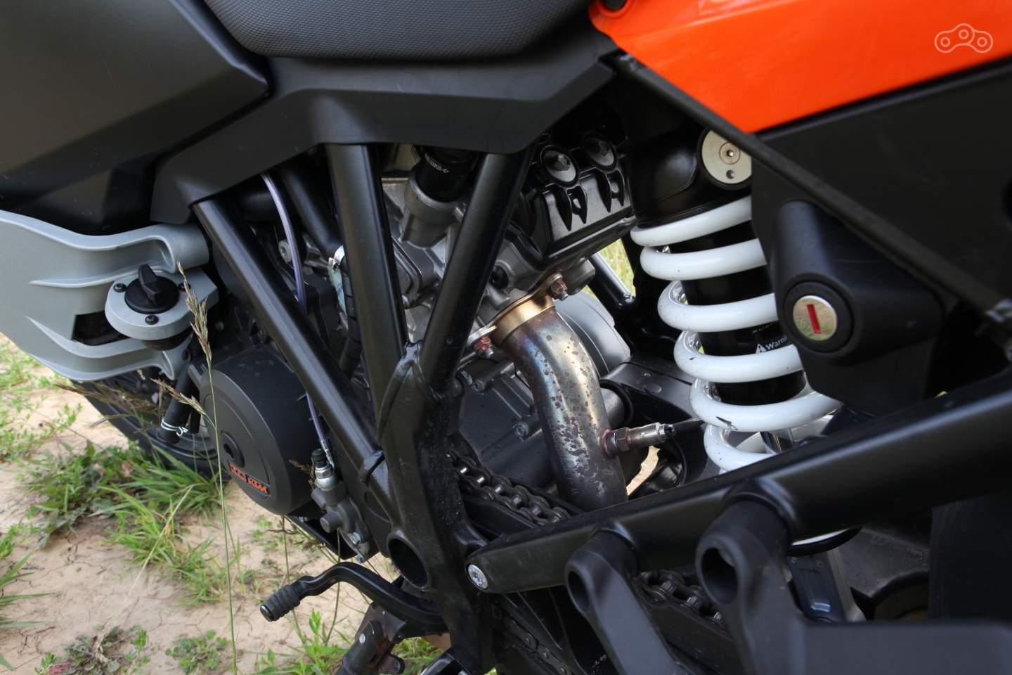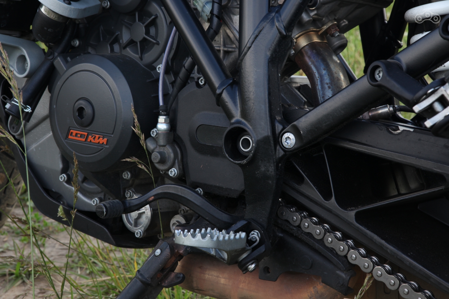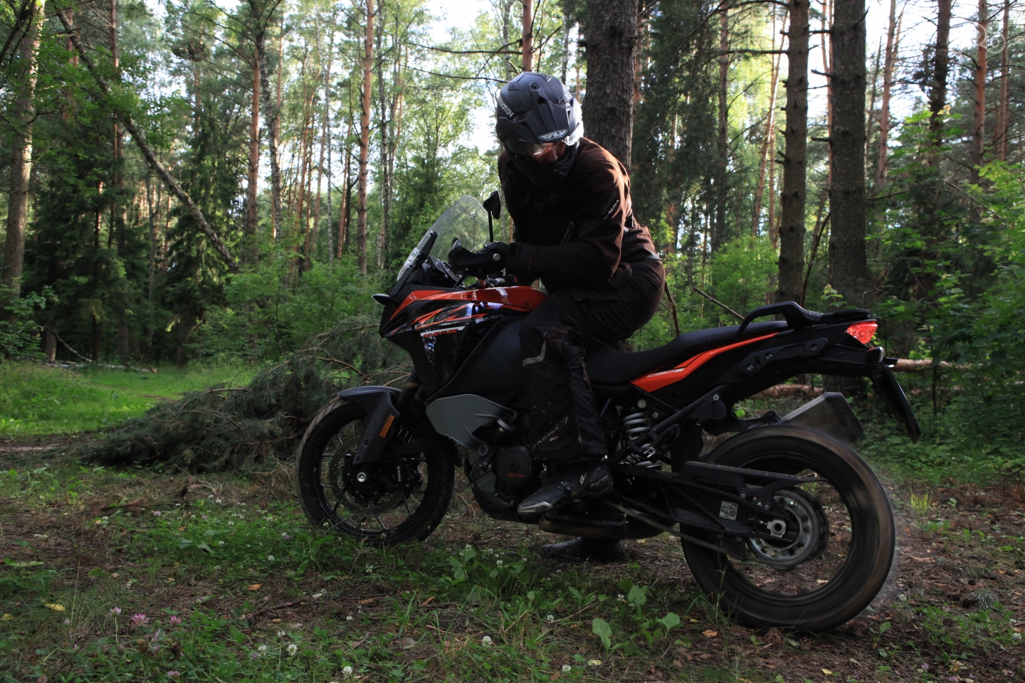 Хорош и трекшн-контроль, который, как и на старших моделях, рубит не топливо, а подачу воздуха. Происходит это настолько деликатно и незаметно, что о работе системы узнаешь лишь из мигающей индикации на приборной панели! А вот ABS – без откровений, современный, но не более того. Блокировки колеса отлавливает чётко, на слишком раннее срабатывание жаловаться не приходится, но от КТМ традиционно ждёшь большего, чем просто хорошо.