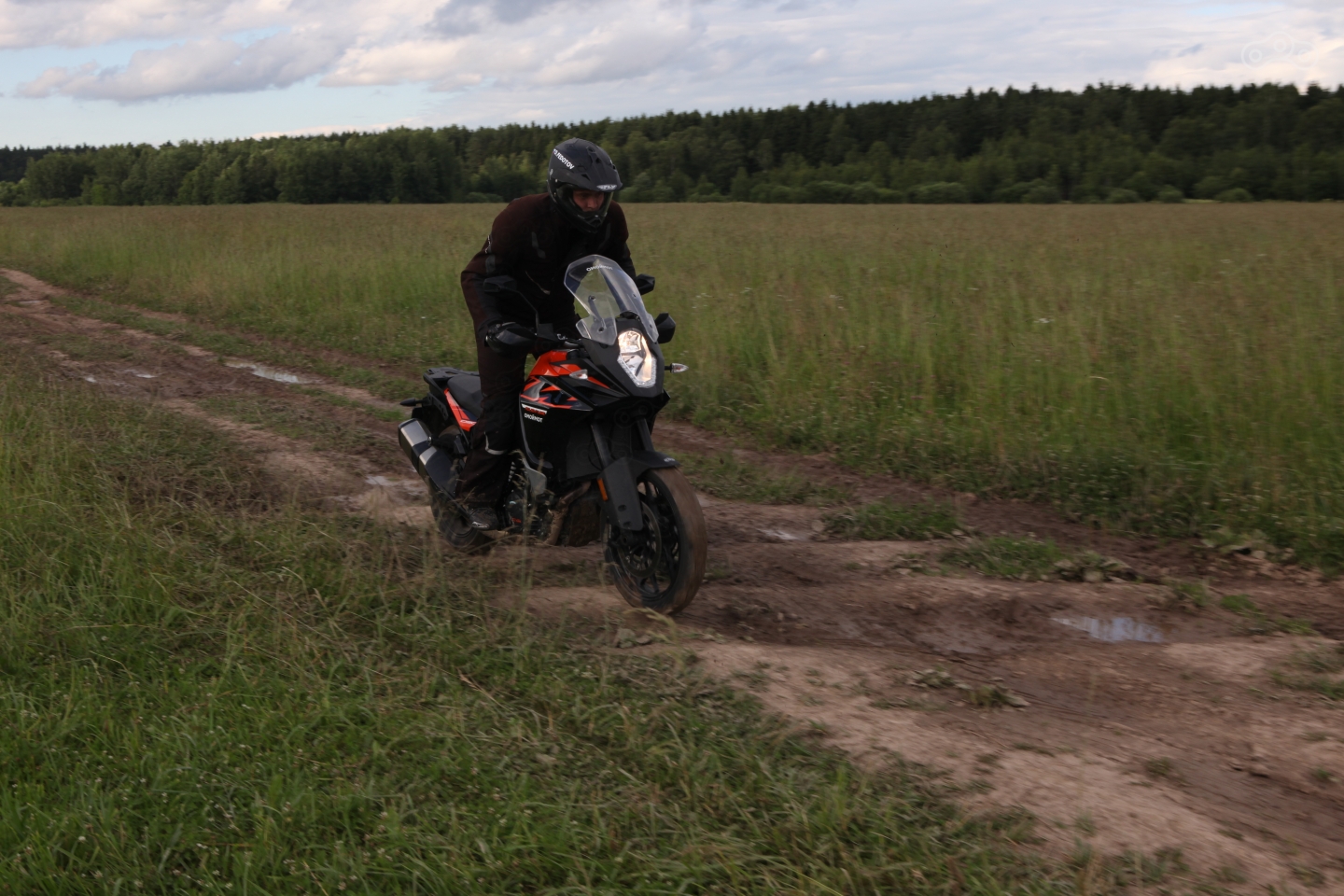 На лёгком оффроуде мотоцикл чувствует себя уверенно, спасибо длинноходным подвескам