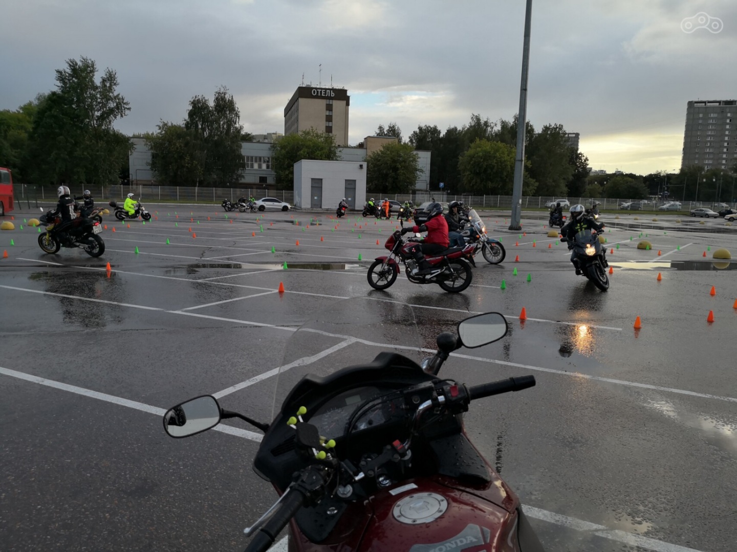 - езжай только в шлеме. Обычно это не надо комментировать, но это означает, что даже если нужно недалеко переставить мотоцикл, надо сделать это в шлеме или перекатить вручную, хотя казалось бы — 20 метров по площадке. Увы, площадка — парковка, на парковку действуют правила, мероприятие согласовано — и это помимо очевидного момента с безопасностью